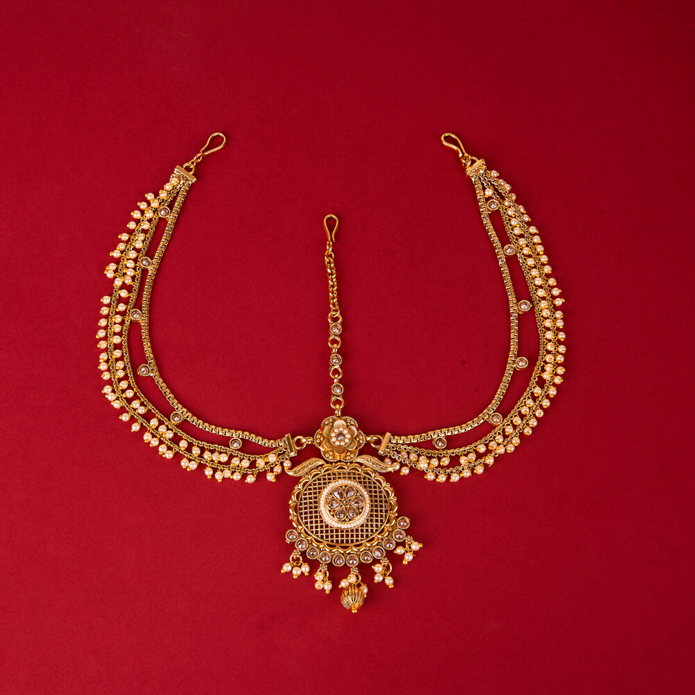 Kanhai Jewels offers an exclusive collection of finest quality crafted Fashion Jewellery in various colors. We make sure that our collection of Antique Pearl Damini With Gold Plating are beautiful, elegent & will surely galvanize you, because our products are unique, comfortable, fashion forward & very popular for the rich look. Base Metal of our product is Alloy, i.e Mixing of Copper & Brass. We pack all the products using quality packaging material to ensure safe and secure transportation.