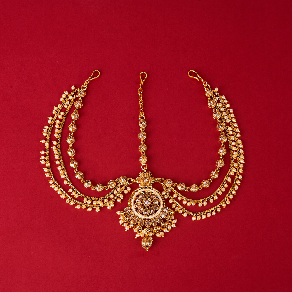 Kanhai Jewels offers an exclusive collection of finest quality crafted Fashion Jewellery in various colors. We make sure that our collection of Antique Pearl Damini With Gold Plating are beautiful, elegent & will surely galvanize you, because our products are unique, comfortable, fashion forward & very popular for the rich look. Base Metal of our product is Alloy, i.e Mixing of Copper & Brass. We pack all the products using quality packaging material to ensure safe and secure transportation.