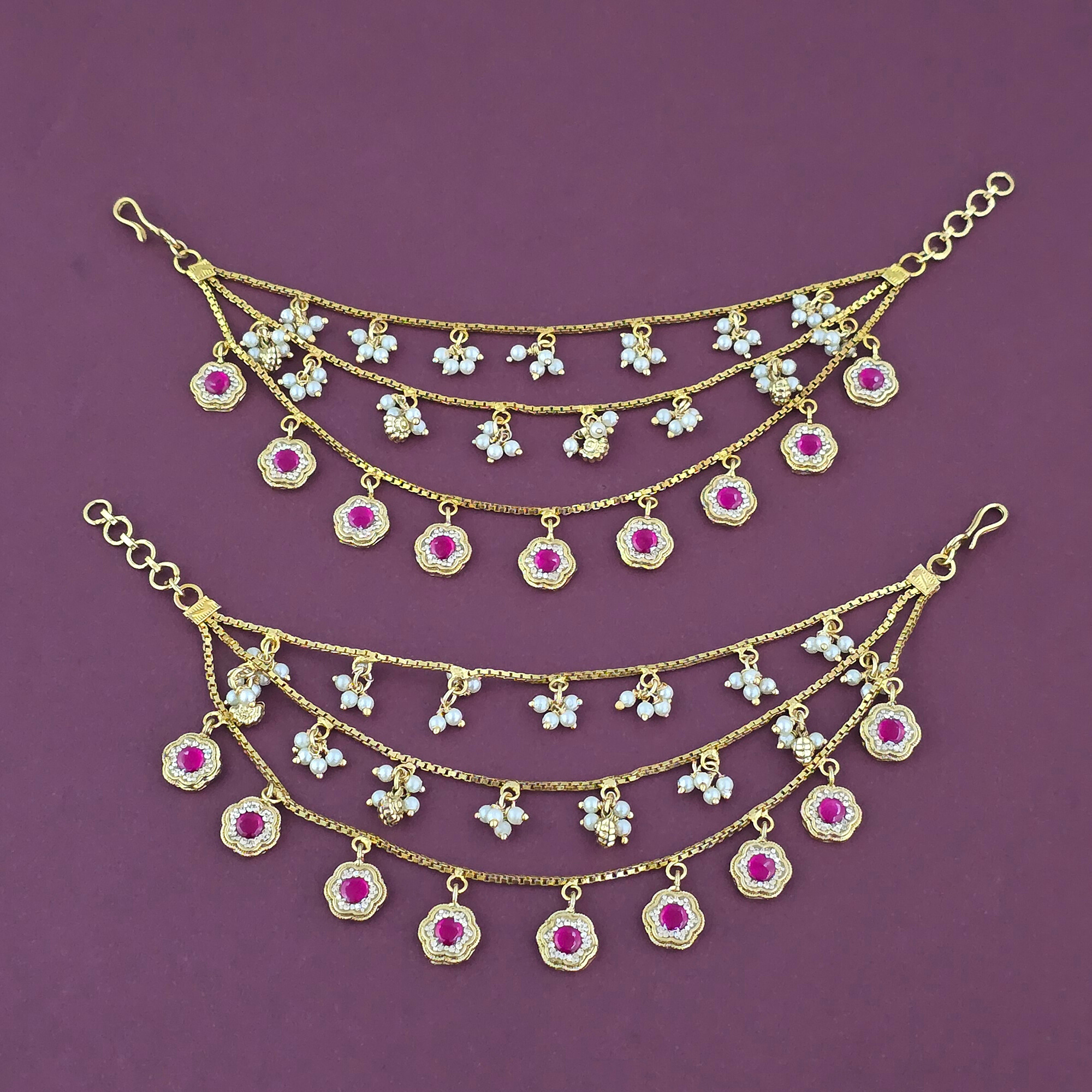 Kanhai Jewels offers an exclusive collection of finest quality crafted Fashion Jewellery in various colors. We make sure that our collection of Antique Pearl Ear Chain With Gold Plating are beautiful, elegent & will surely galvanize you, because our products are unique, comfortable, fashion forward & very popular for the rich look. Base Metal of our product is Alloy, i.e Mixing of Copper & Brass. We pack all the products using quality packaging material to ensure safe and secure transportation.