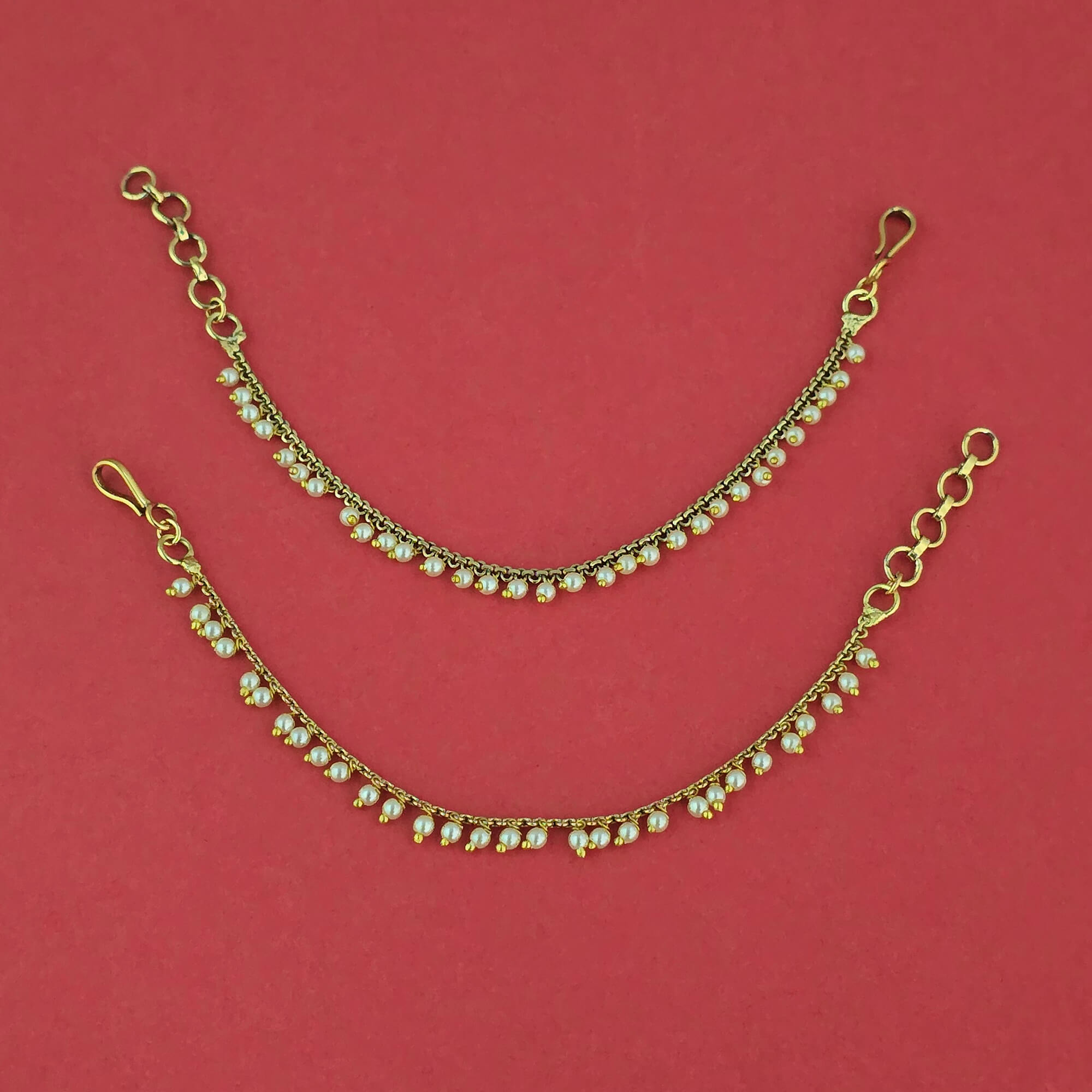 Kanhai Jewels offers an exclusive collection of finest quality crafted Fashion Jewellery in various colors. We make sure that our collection of Antique Pearl Ear Chain With Gold Plating are beautiful, elegent & will surely galvanize you, because our products are unique, comfortable, fashion forward & very popular for the rich look. Base Metal of our product is Alloy, i.e Mixing of Copper & Brass. We pack all the products using quality packaging material to ensure safe and secure transportation.