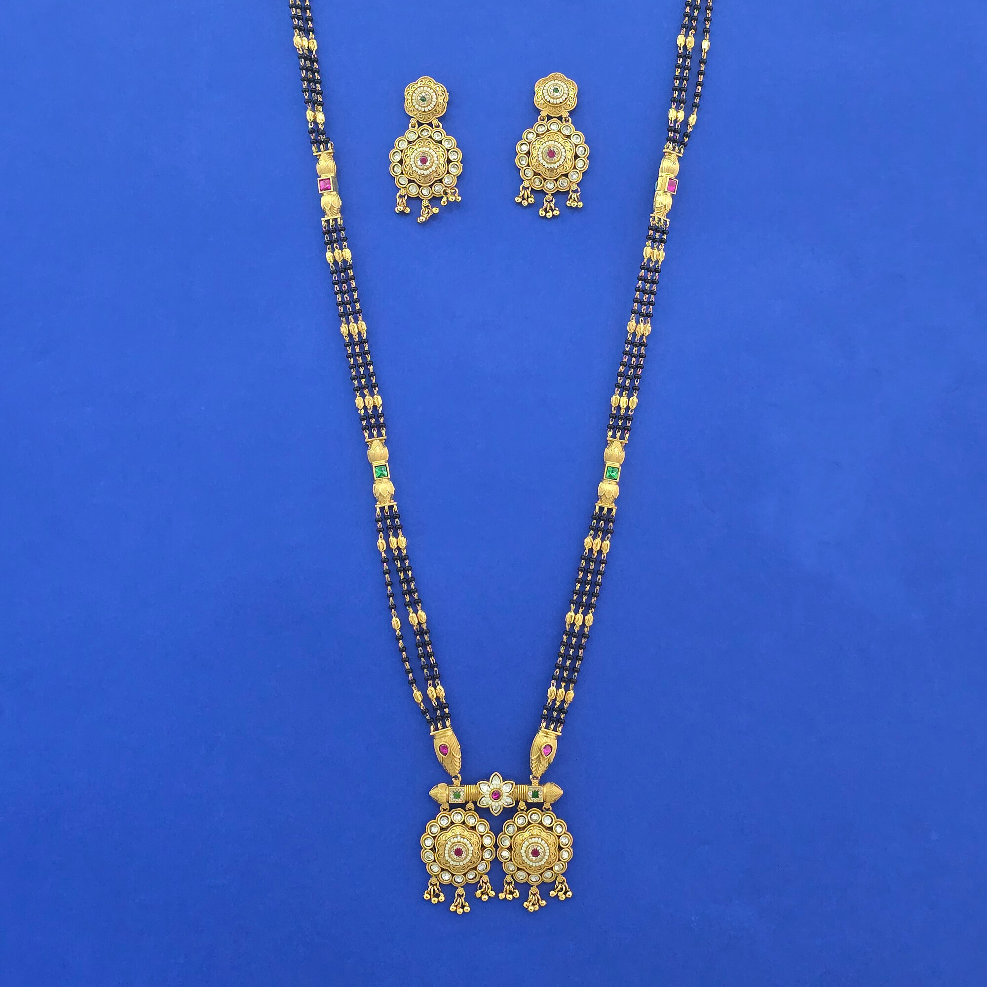 Home / Antique Mangalsutra / antique pearl mangalsutra with gold plating