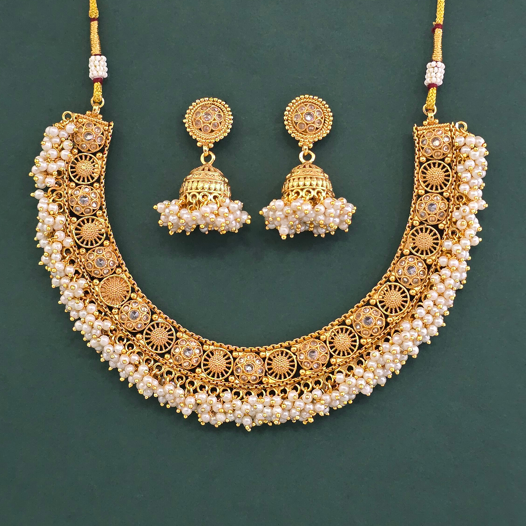 Kanhai Jewels offers an exclusive collection of finest quality crafted Fashion Jewellery in various colors. We make sure that our collection of Antique Pearl Necklace With Gold Plating are beautiful, elegent & will surely galvanize you, because our products are unique, comfortable, fashion forward & very popular for the rich look. Base Metal of our product is Alloy, i.e Mixing of Copper & Brass. We pack all the products using quality packaging material to ensure safe and secure transportation.