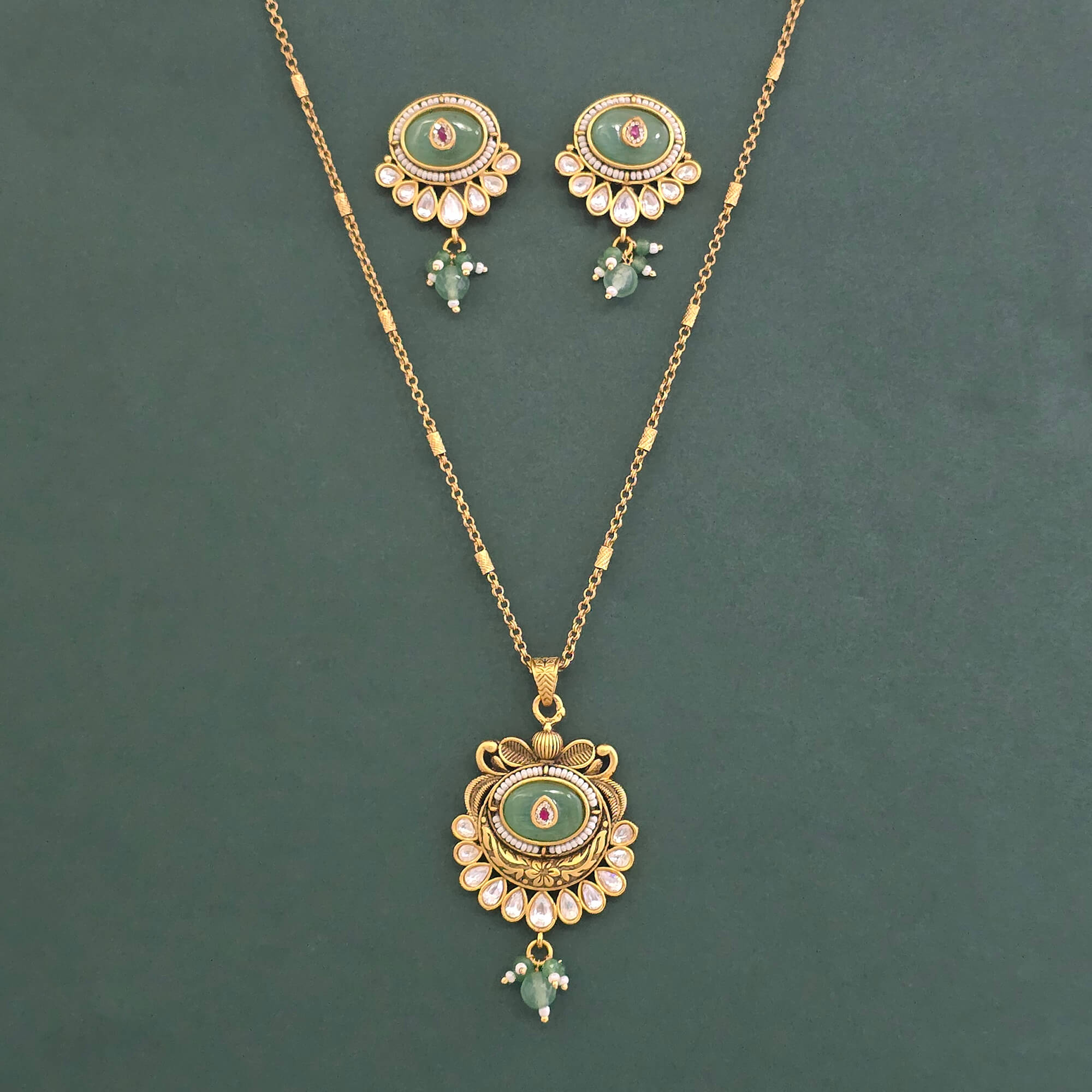 Home / Antique Pendant Set / antique pearl pendant set with matte gold plated
