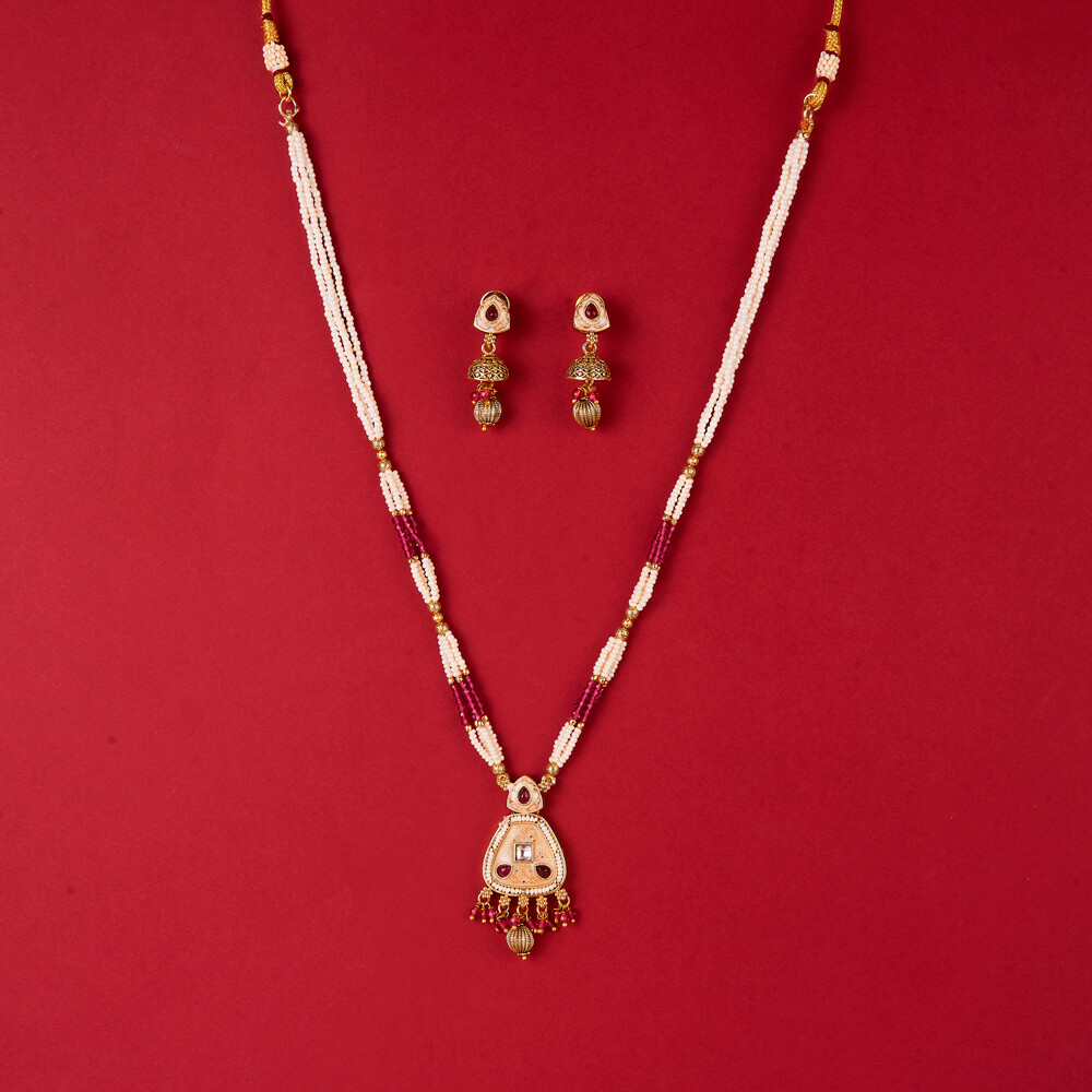 Kanhai Jewels offers an exclusive collection of finest quality crafted Fashion Jewellery in various colors. We make sure that our collection of Antique Pearl Pendant Set With Matte Gold Plating are beautiful, elegent & will surely galvanize you, because our products are unique, comfortable, fashion forward & very popular for the rich look. Base Metal of our product is Alloy, i.e Mixing of Copper & Brass. We pack all the products using quality packaging material to ensure safe and secure transportation.