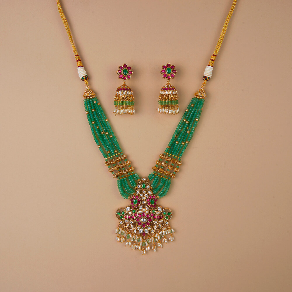 Kanhai Jewels offers an exclusive collection of finest quality crafted Fashion Jewellery in various colors. We make sure that our collection of Antique Pearl Pendant Set With Matte Gold Plating are beautiful, elegent & will surely galvanize you, because our products are unique, comfortable, fashion forward & very popular for the rich look. Base Metal of our product is Alloy, i.e Mixing of Copper & Brass. We pack all the products using quality packaging material to ensure safe and secure transportation.