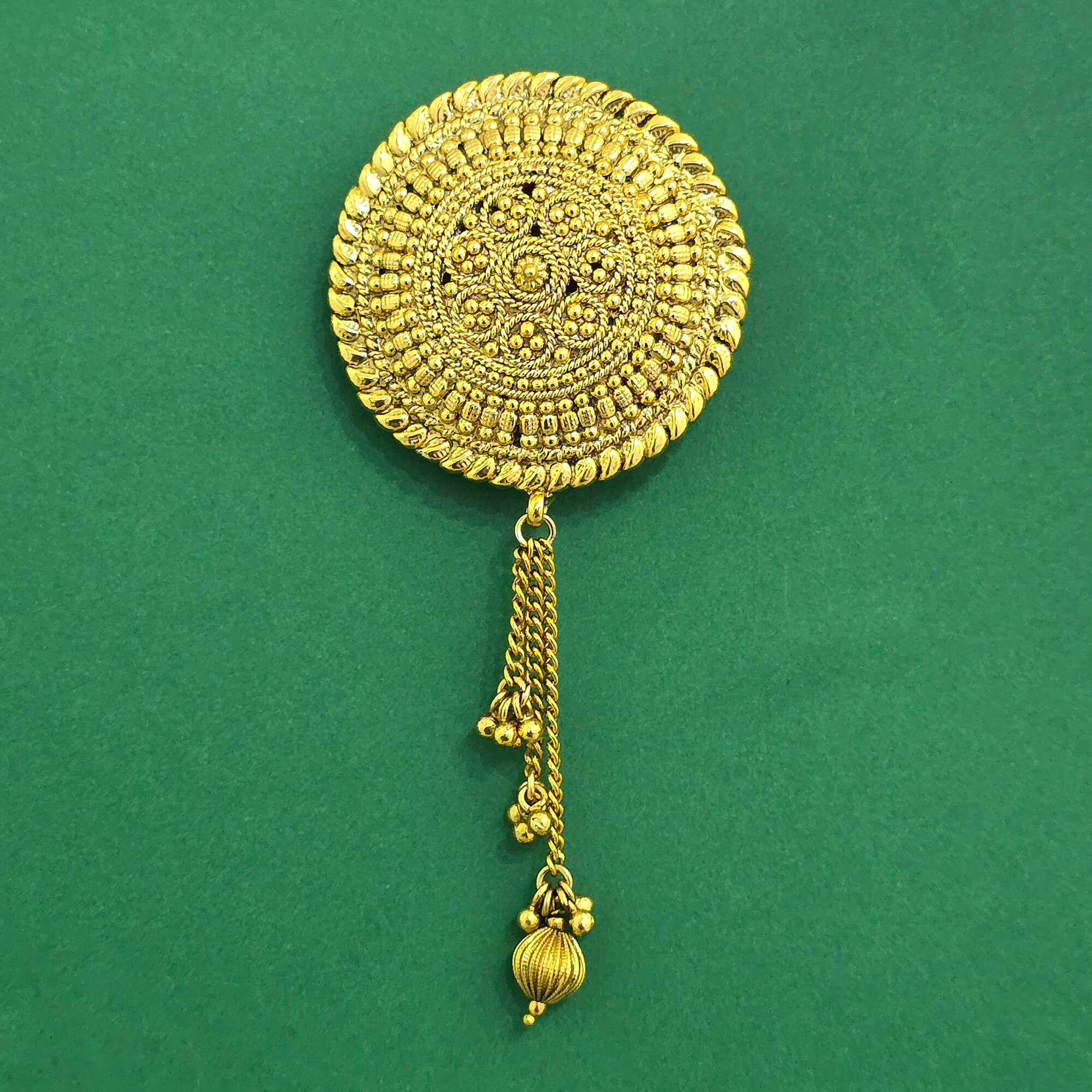 Kanhai Jewels offers an exclusive collection of finest quality crafted Fashion Jewellery in various colors. We make sure that our collection of Antique Plain Gold Brooch With Gold Plating are beautiful, elegent & will surely galvanize you, because our products are unique, comfortable, fashion forward & very popular for the rich look. Base Metal of our product is Alloy, i.e Mixing of Copper & Brass. We pack all the products using quality packaging material to ensure safe and secure transportation.