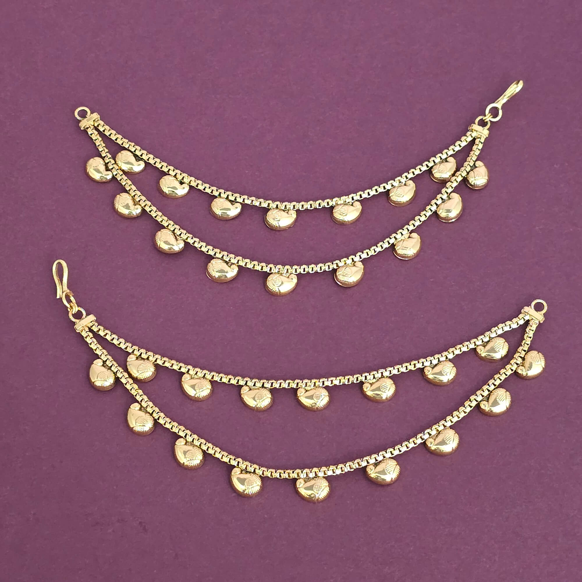 Kanhai Jewels offers an exclusive collection of finest quality crafted Fashion Jewellery in various colors. We make sure that our collection of Antique Plain Gold Ear Chain With Gold Plating are beautiful, elegent & will surely galvanize you, because our products are unique, comfortable, fashion forward & very popular for the rich look. Base Metal of our product is Alloy, i.e Mixing of Copper & Brass. We pack all the products using quality packaging material to ensure safe and secure transportation.