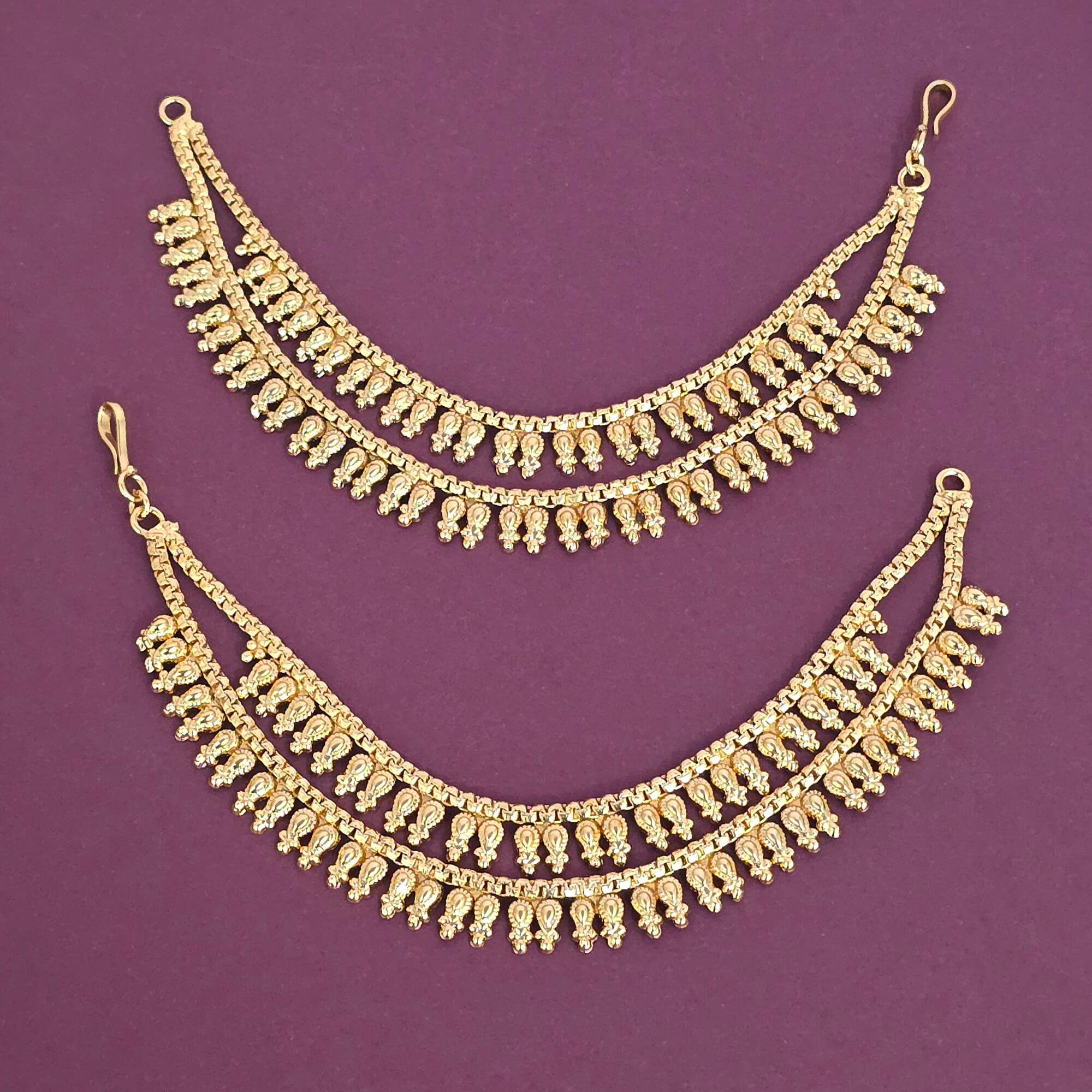 Kanhai Jewels offers an exclusive collection of finest quality crafted Fashion Jewellery in various colors. We make sure that our collection of Antique Plain Gold Ear Chain With Gold Plating are beautiful, elegent & will surely galvanize you, because our products are unique, comfortable, fashion forward & very popular for the rich look. Base Metal of our product is Alloy, i.e Mixing of Copper & Brass. We pack all the products using quality packaging material to ensure safe and secure transportation.