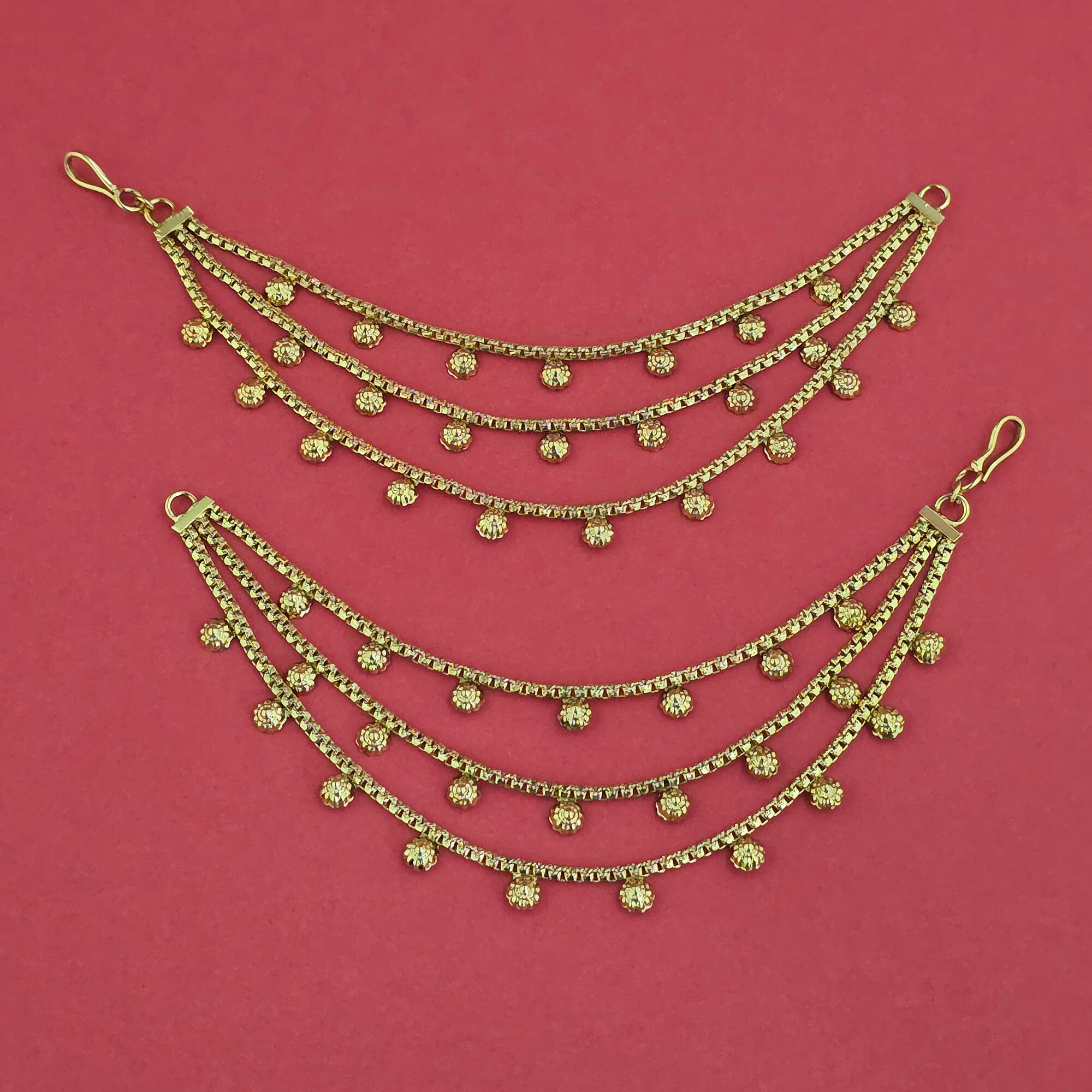 Kanhai Jewels offers an exclusive collection of finest quality crafted Fashion Jewellery in various colors. We make sure that our collection of Antique Plain Gold Ear Chain With Gold Plating are beautiful, elegent & will surely galvanize you, because our products are unique, comfortable, fashion forward & very popular for the rich look. Base Metal of our product is Alloy, i.e Mixing of Copper & Brass. We pack all the products using quality packaging material to ensure safe and secure transportation.