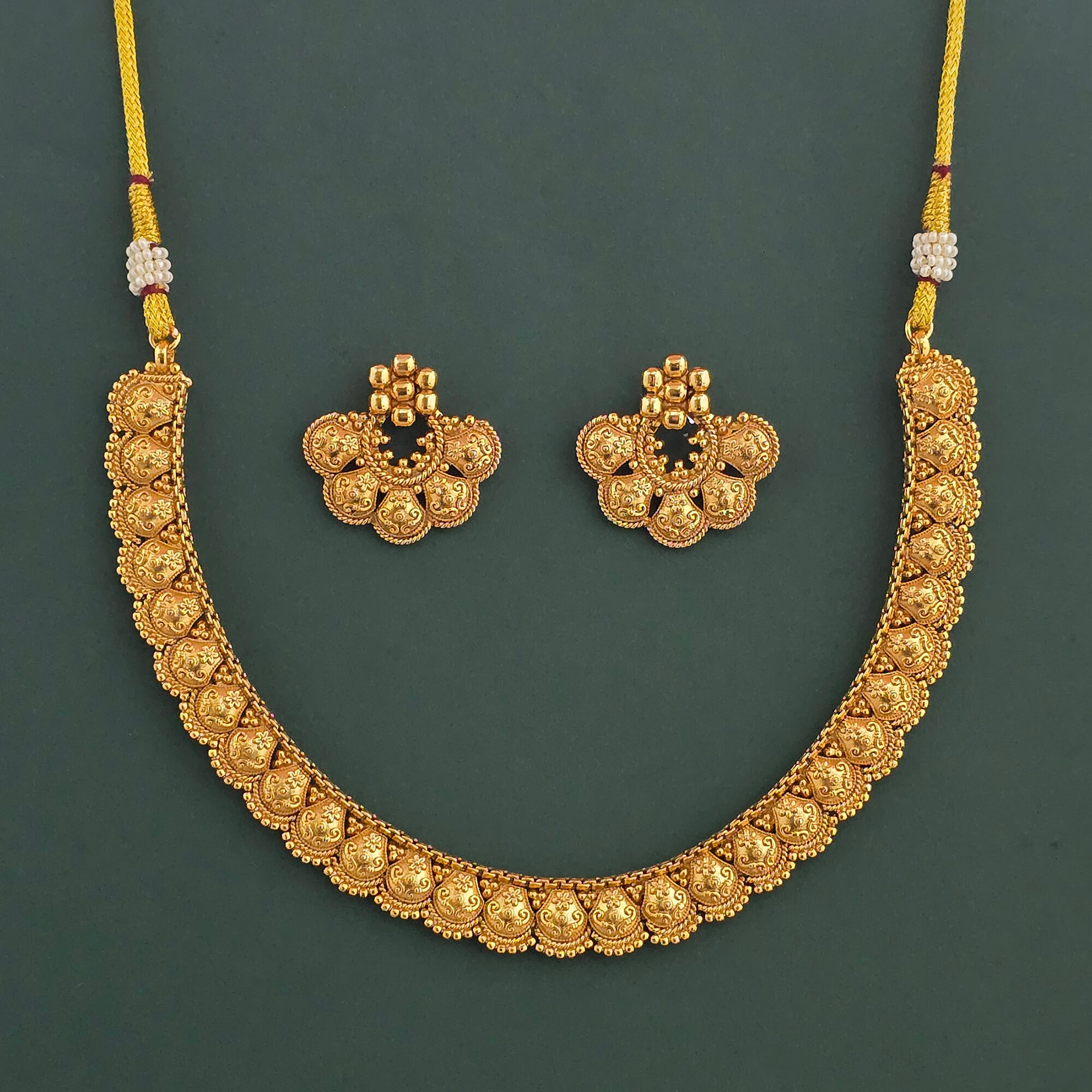 232374 Antique Plain Gold Necklace with Gold PlatingNew