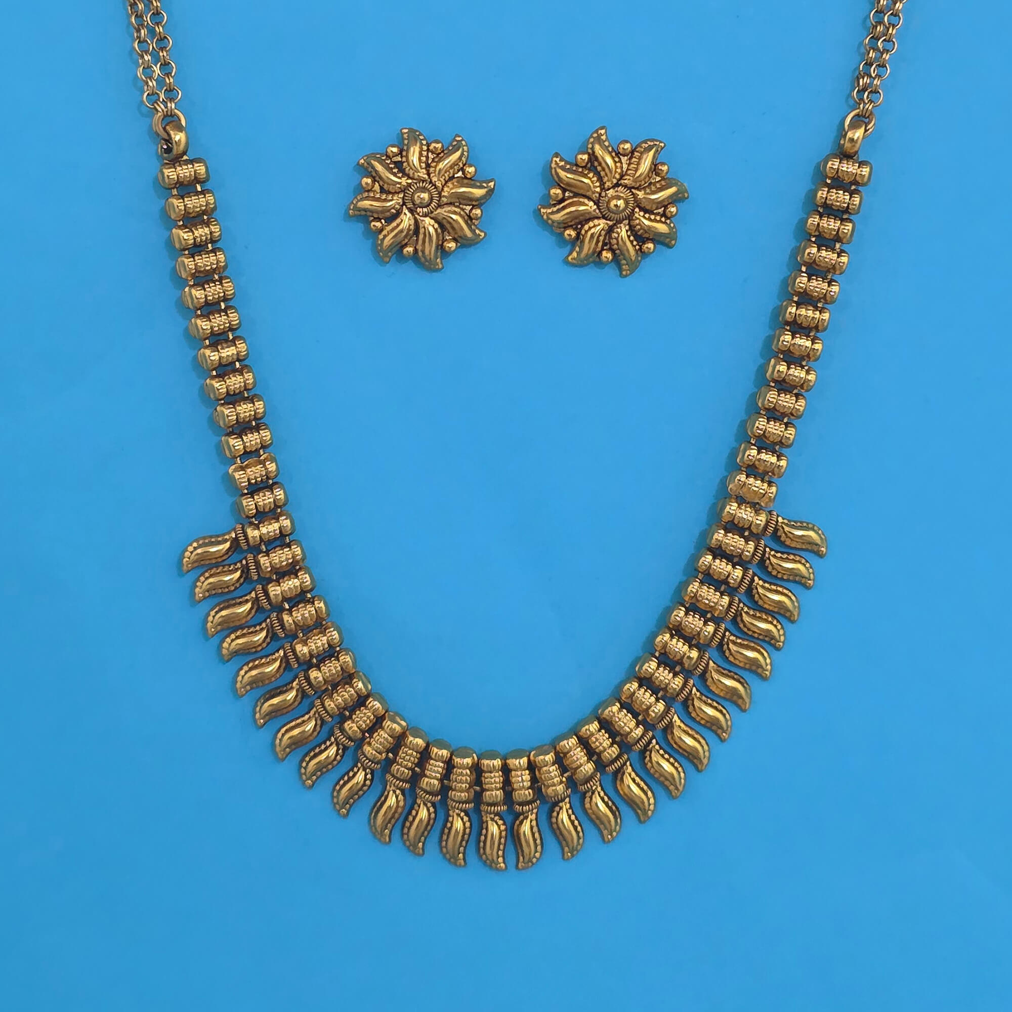 • Antique Plain Gold Necklace with Matte Gold Plating