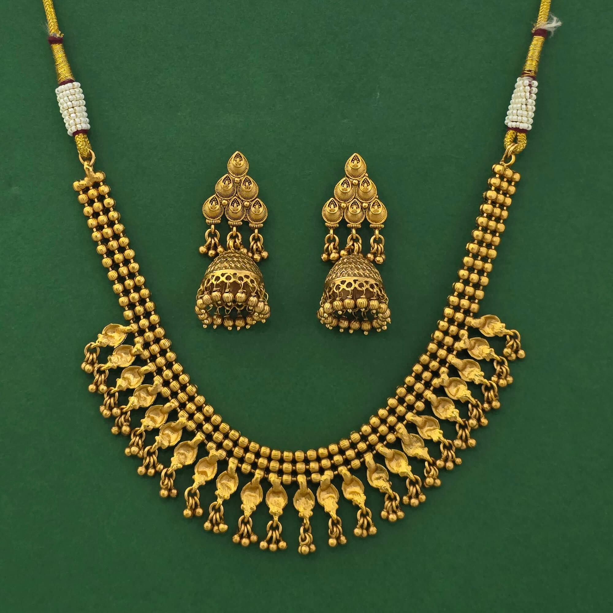 Kanhai Jewels offers an exclusive collection of finest quality crafted Fashion Jewellery in various colors. We make sure that our collection of Antique Plain Matte Gold Necklace Set With Matte Gold Plating are beautiful, elegent & will surely galvanize you, because our products are unique, comfortable, fashion forward & very popular for the rich look. Base Metal of our product is Alloy, i.e Mixing of Copper & Brass. We pack all the products using quality packaging material to ensure safe and secure transportation.