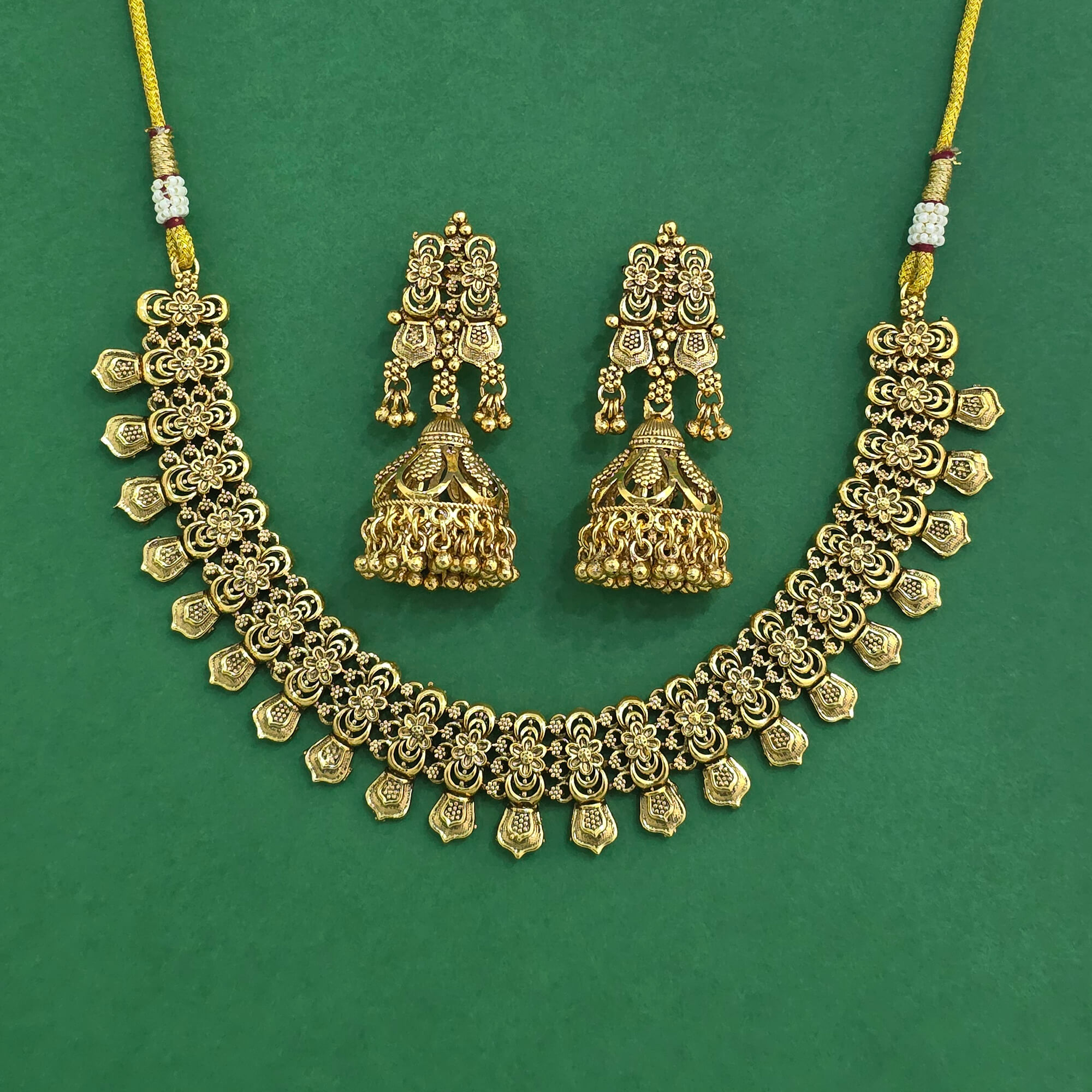Kanhai Jewels offers an exclusive collection of finest quality crafted Fashion Jewellery in various colors. We make sure that our collection of Antique Plain Matte Gold Necklace Set With Matte Gold Plating are beautiful, elegent & will surely galvanize you, because our products are unique, comfortable, fashion forward & very popular for the rich look. Base Metal of our product is Alloy, i.e Mixing of Copper & Brass. We pack all the products using quality packaging material to ensure safe and secure transportation.