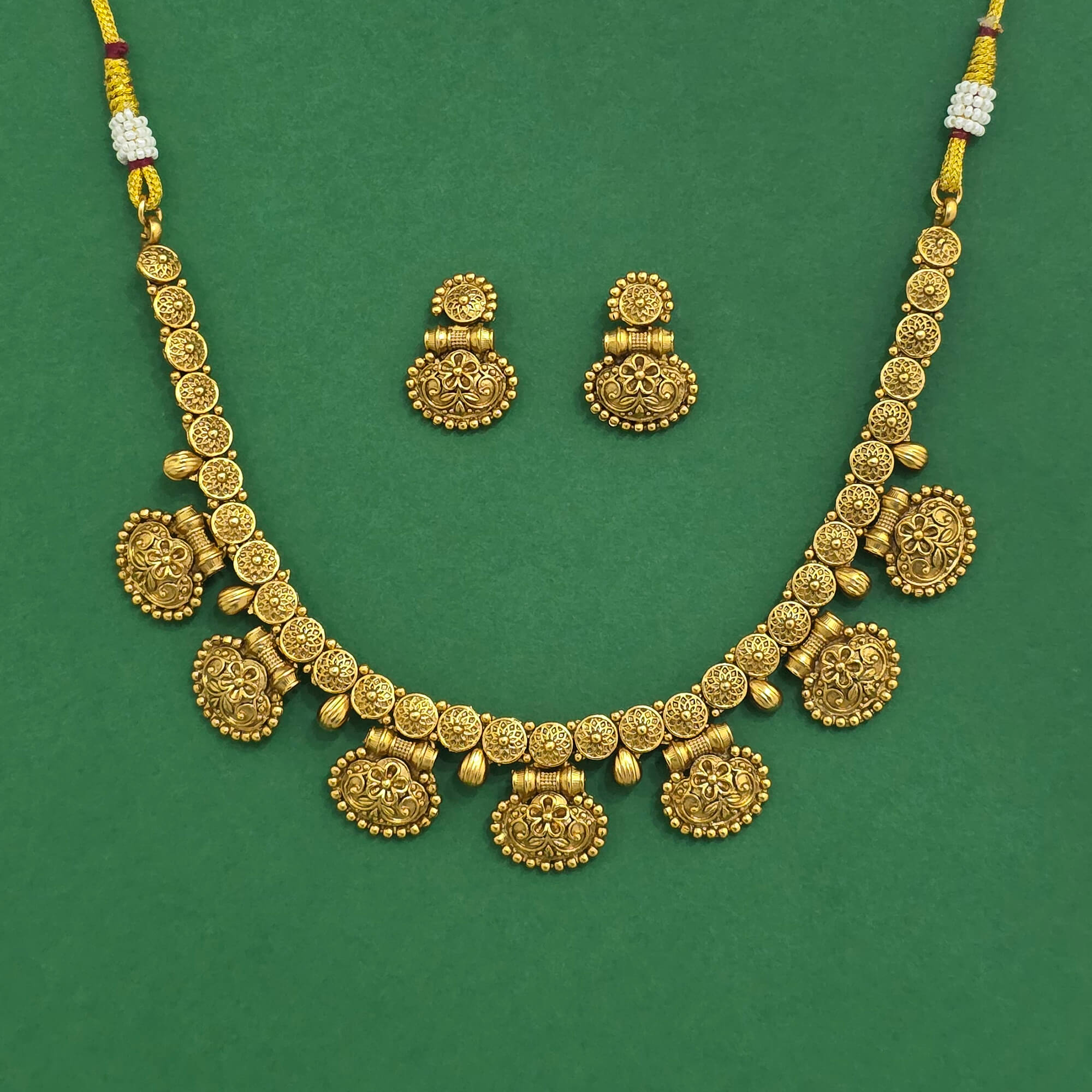 Kanhai Jewels offers an exclusive collection of finest quality crafted Fashion Jewellery in various colors. We make sure that our collection of Antique Plain Matte Gold Necklace Set With Matte Gold Plating are beautiful, elegent & will surely galvanize you, because our products are unique, comfortable, fashion forward & very popular for the rich look. Base Metal of our product is Alloy, i.e Mixing of Copper & Brass. We pack all the products using quality packaging material to ensure safe and secure transportation.