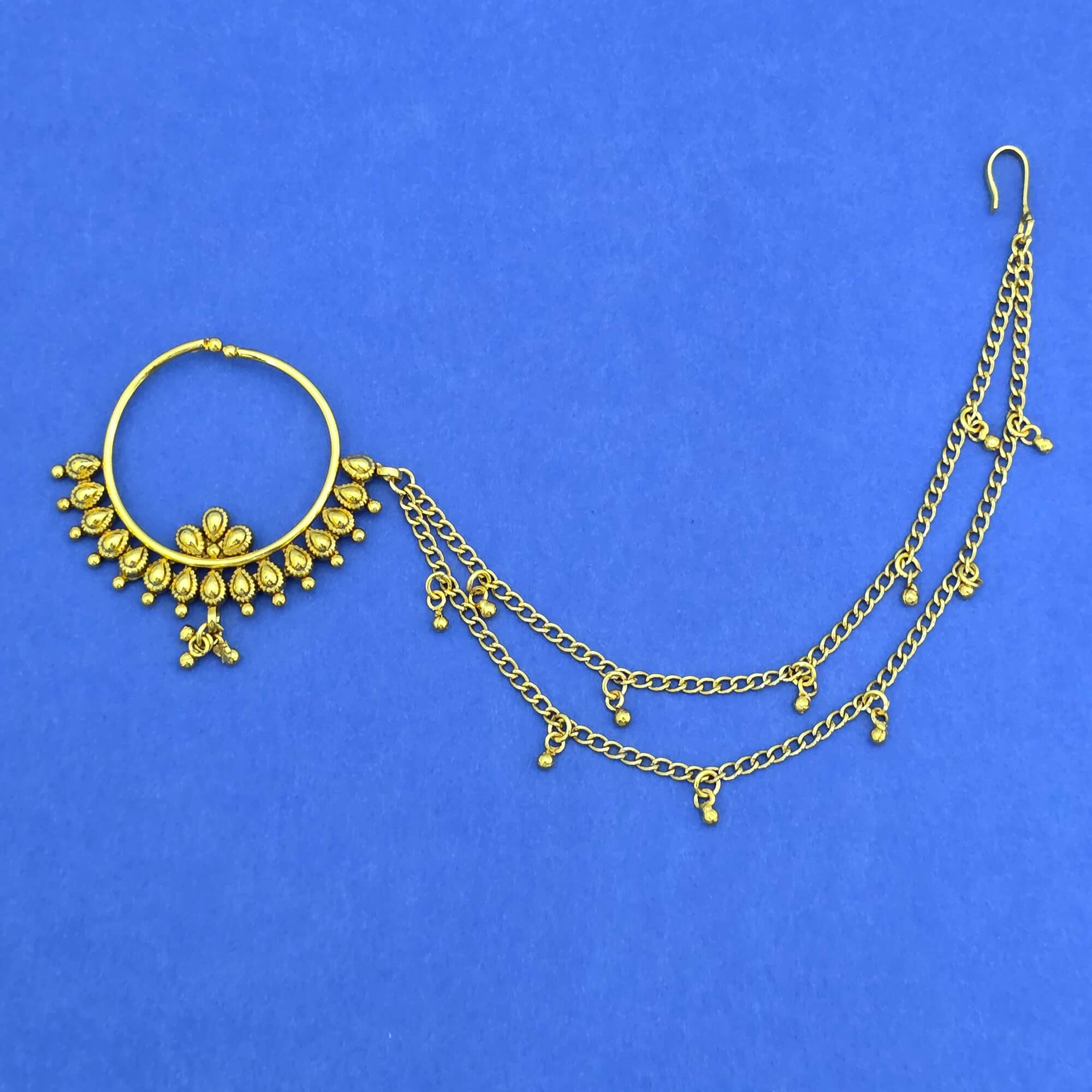 Kanhai Jewels offers an exclusive collection of finest quality crafted Fashion Jewellery in various colors. We make sure that our collection of Antique Pressing Nose Ring With Gold Plating are beautiful, elegent & will surely galvanize you, because our products are unique, comfortable, fashion forward & very popular for the rich look. Base Metal of our product is Alloy, i.e Mixing of Copper & Brass. We pack all the products using quality packaging material to ensure safe and secure transportation.
