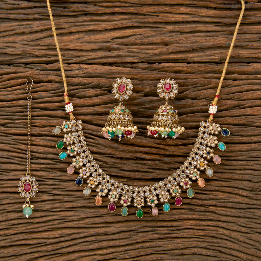 219414 Antique Reverse Ad Stone Necklace With Mehndi Plating