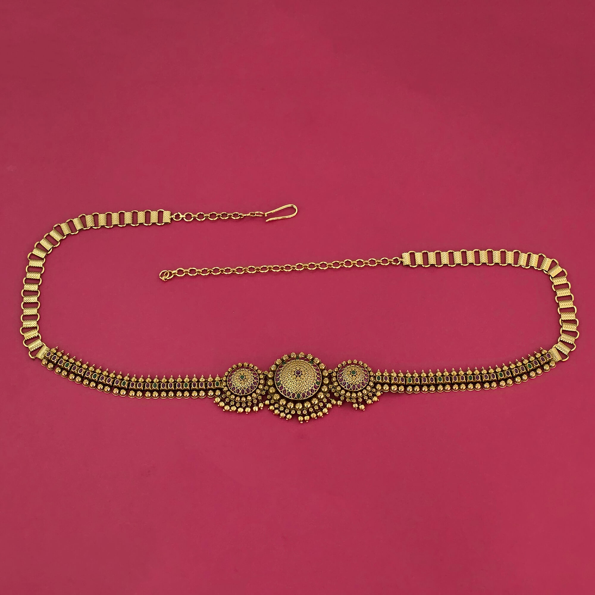 Kanhai Jewels offers an exclusive collection of finest quality crafted Fashion Jewellery in various colors. We make sure that our collection of Antique South Indian Belt With Gold Plating are beautiful, elegent & will surely galvanize you, because our products are unique, comfortable, fashion forward & very popular for the rich look. Base Metal of our product is Alloy, i.e Mixing of Copper & Brass. We pack all the products using quality packaging material to ensure safe and secure transportation.
