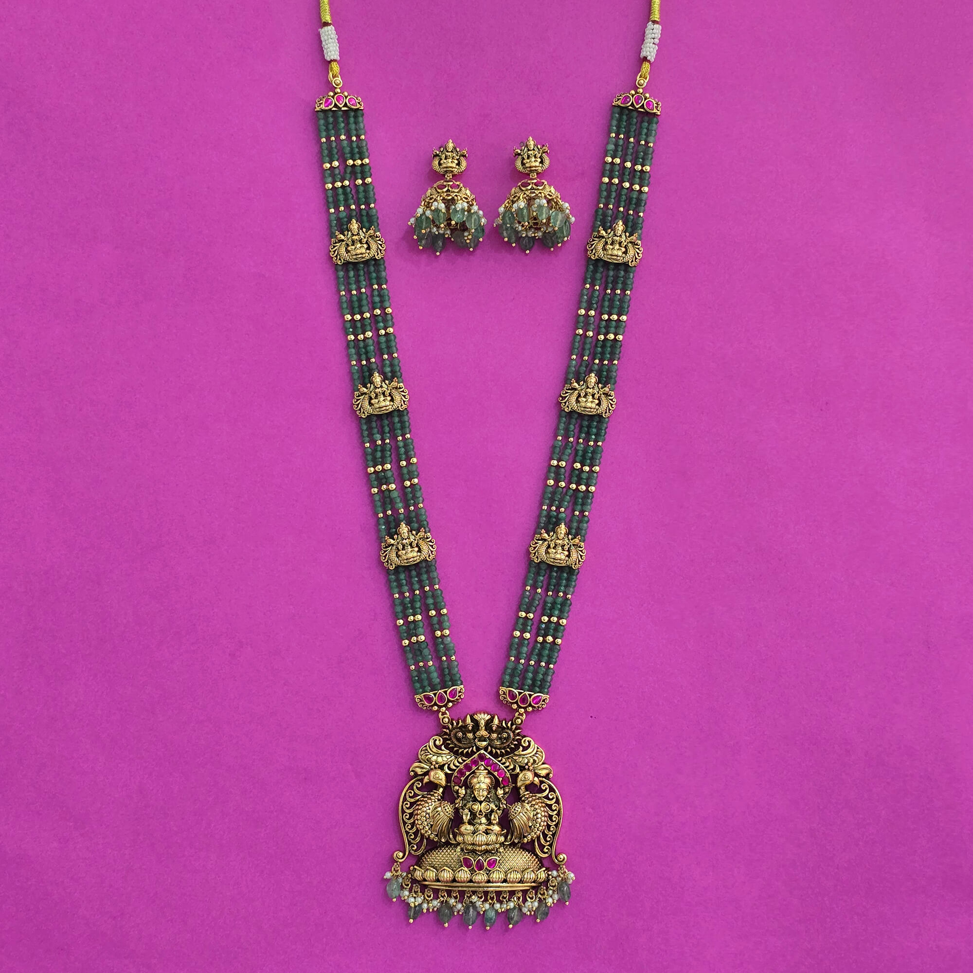 Home / Antique Necklace / antique south indian necklace set with matte gold plating