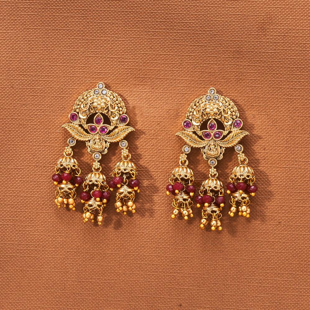 Kanhai Jewels offers an exclusive collection of finest quality crafted Fashion Jewellery in various colors. We make sure that our collection of Antique Temple Earring With Matte Gold Plating are beautiful, elegent & will surely galvanize you, because our products are unique, comfortable, fashion forward & very popular for the rich look. Base Metal of our product is Alloy, i.e Mixing of Copper & Brass. We pack all the products using quality packaging material to ensure safe and secure transportation.