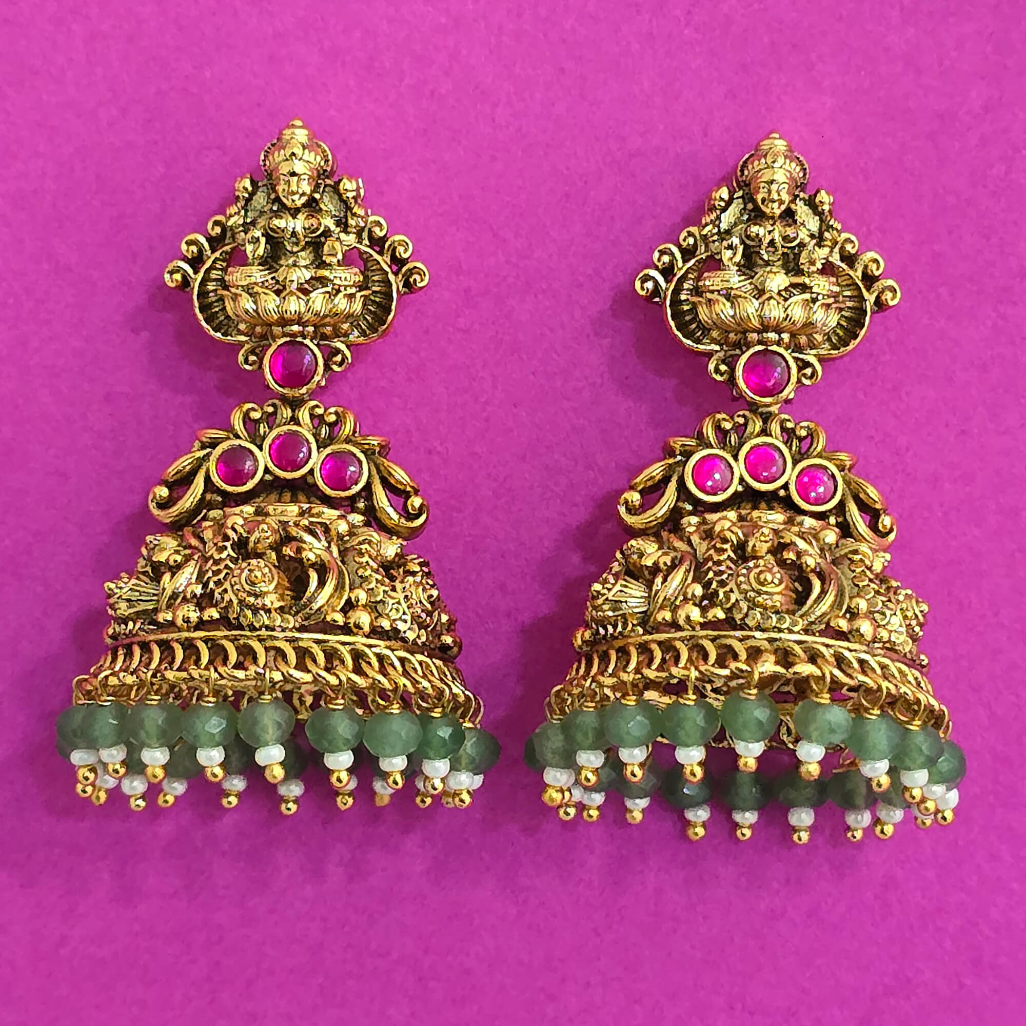 Kanhai Jewels offers an exclusive collection of finest quality crafted Fashion Jewellery in various colors. We make sure that our collection of Antique Temple Earring With Matte Gold Plating are beautiful, elegent & will surely galvanize you, because our products are unique, comfortable, fashion forward & very popular for the rich look. Base Metal of our product is Alloy, i.e Mixing of Copper & Brass. We pack all the products using quality packaging material to ensure safe and secure transportation.