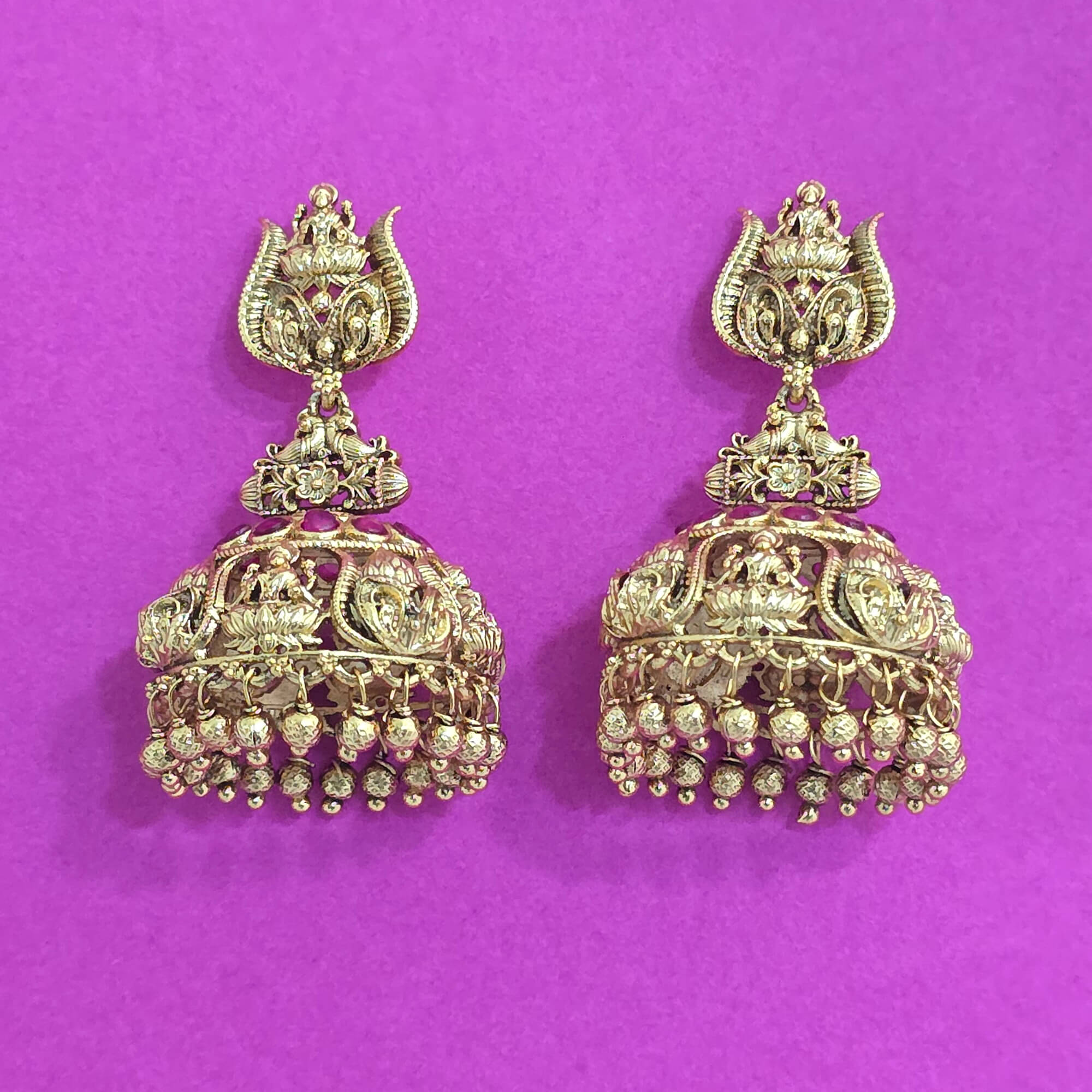Kanhai Jewels offers an exclusive collection of finest quality crafted Fashion Jewellery in various colors. We make sure that our collection of Antique Temple Earring With Matte Gold Plating are beautiful, elegent & will surely galvanize you, because our products are unique, comfortable, fashion forward & very popular for the rich look. Base Metal of our product is Alloy, i.e Mixing of Copper & Brass. We pack all the products using quality packaging material to ensure safe and secure transportation.