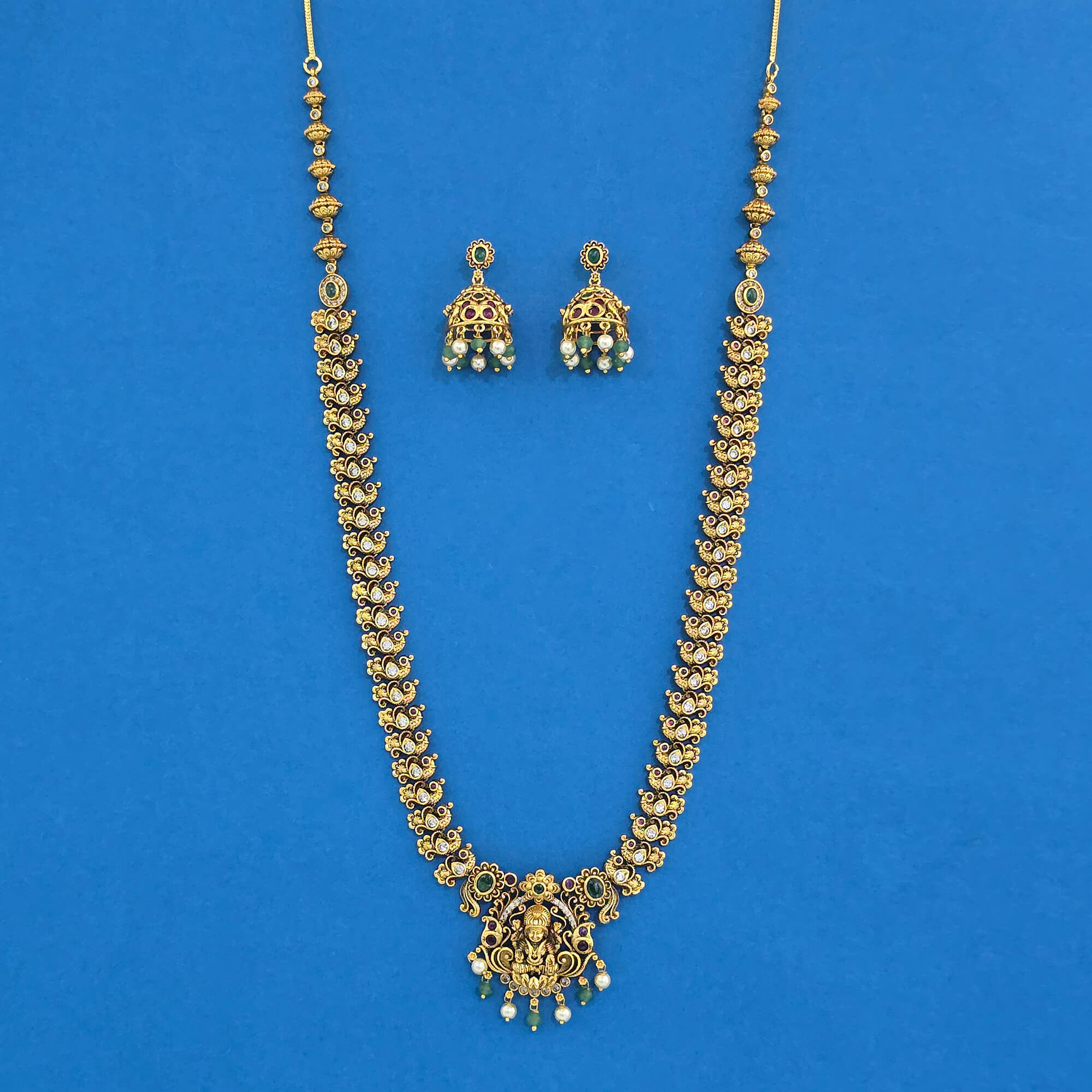 Home / Antique Necklace / antique temple necklace set with matte gold plating