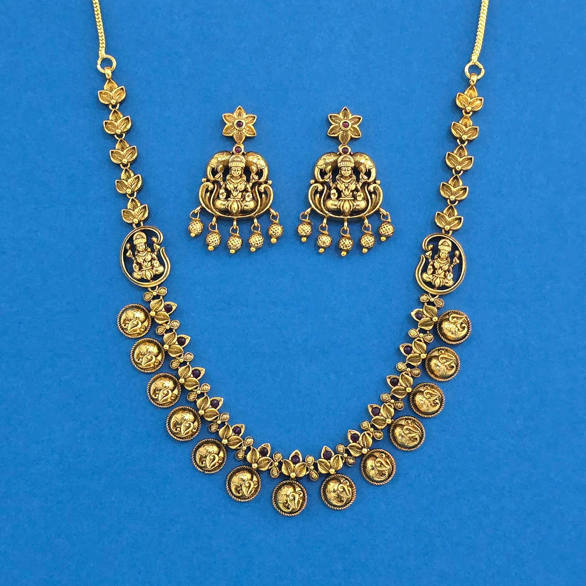 Home / Antique Necklace / antique temple necklace set with matte gold plating