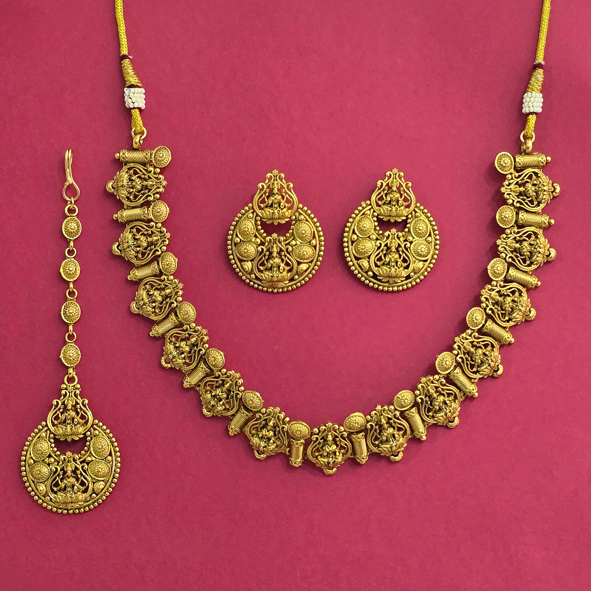 Kanhai Jewels offers an exclusive collection of finest quality crafted Fashion Jewellery in various colors. We make sure that our collection of Antique Temple Necklace With Gold Plating are beautiful, elegent & will surely galvanize you, because our products are unique, comfortable, fashion forward & very popular for the rich look. Base Metal of our product is Alloy, i.e Mixing of Copper & Brass. We pack all the products using quality packaging material to ensure safe and secure transportation.