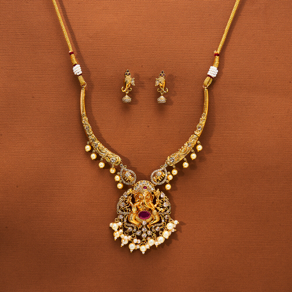 Home / Antique Necklace / antique temple necklace with matte gold plating