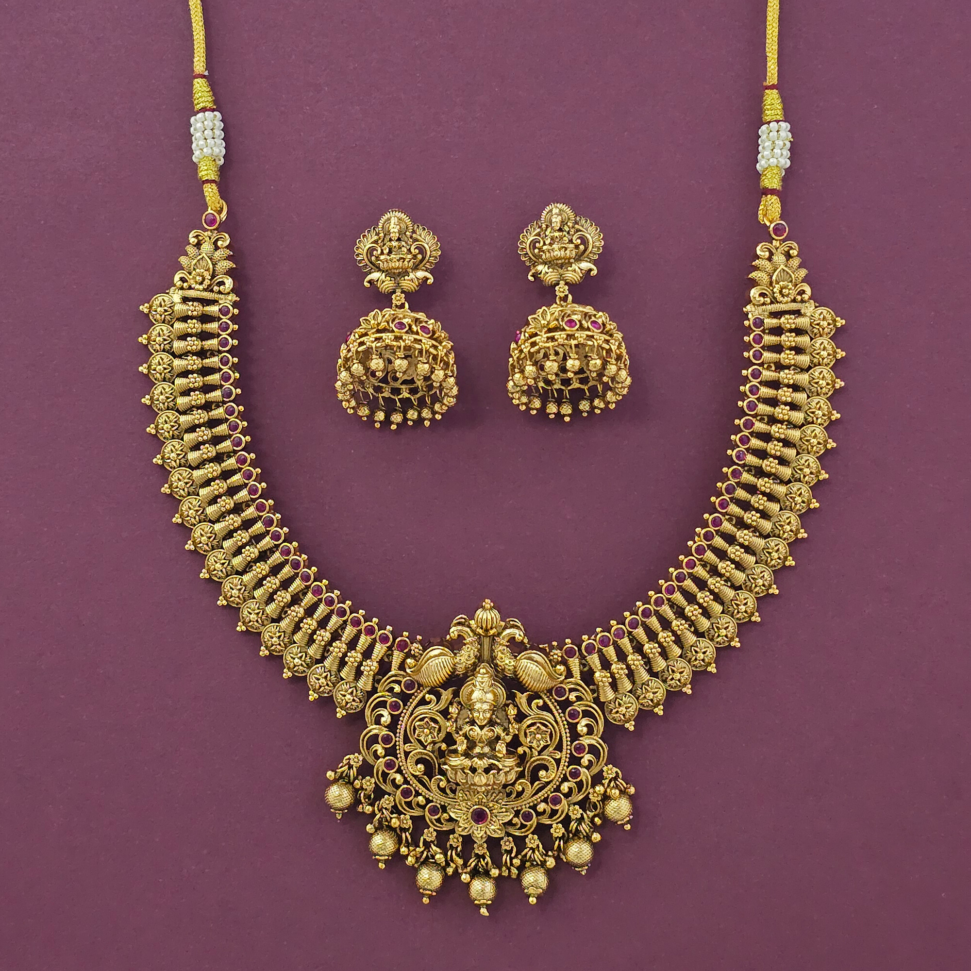 Home / Antique Necklace / antique temple necklace with matte gold plating