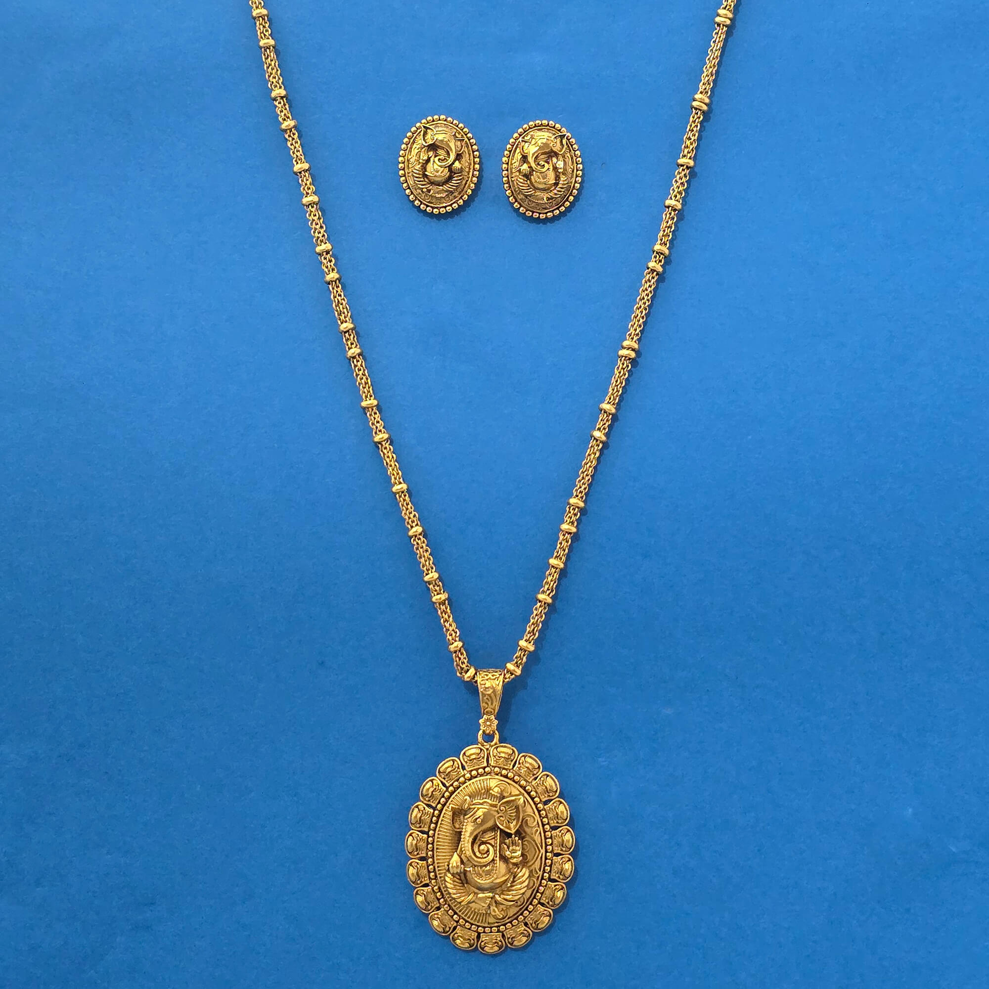 Home / Antique Pendant Set / antique temple pendant set with matte gold plating