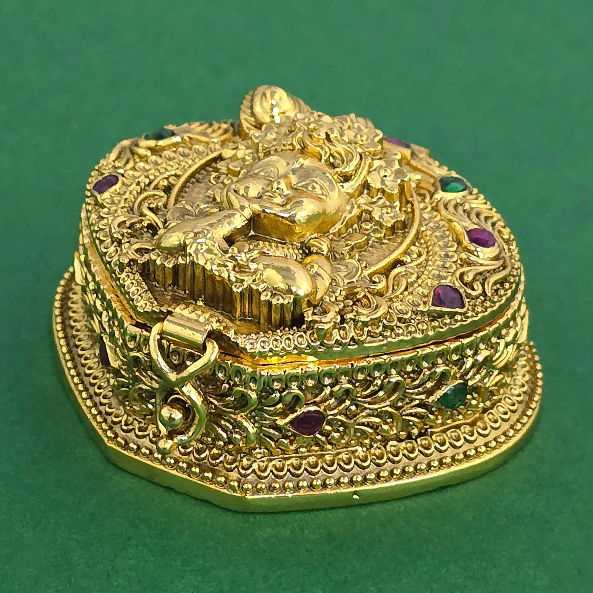 • Antique Temple Sindoor Box With Matte Gold Plating