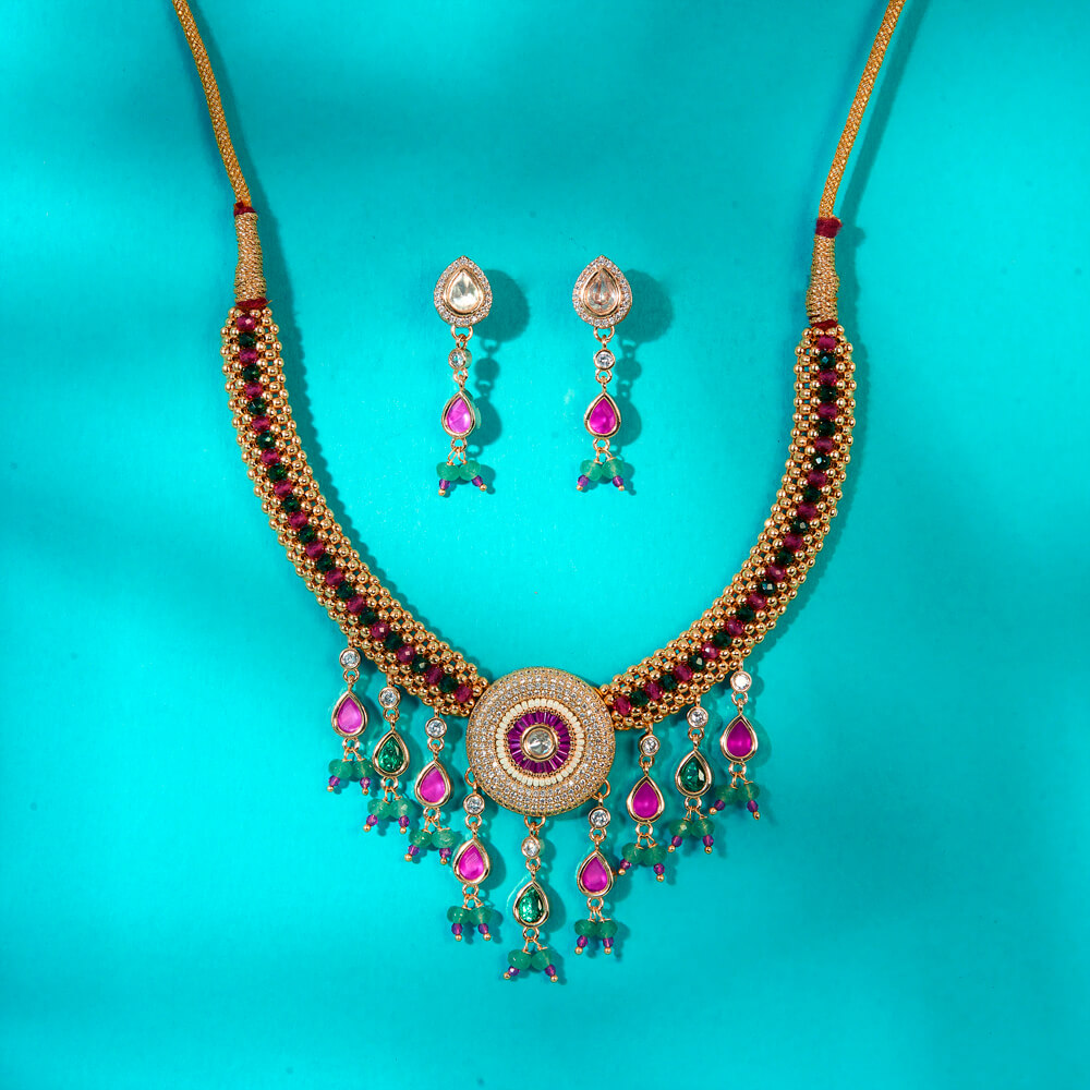 Kanhai Jewels offers an exclusive collection of finest quality crafted Fashion Jewellery in various colors. We make sure that our collection of Antique Thushi Necklace With Gold Plating are beautiful, elegent & will surely galvanize you, because our produ