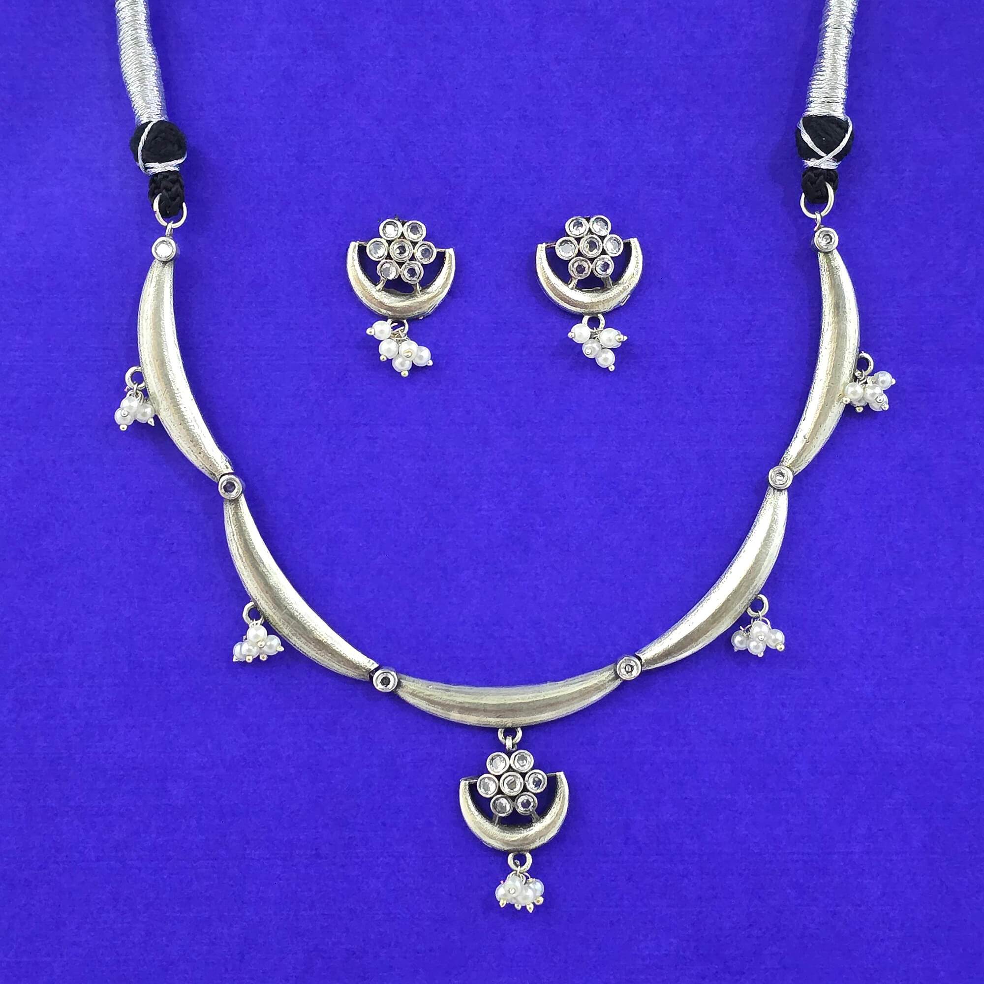 Kanhai Jewels offers an exclusive collection of finest quality crafted Fashion Jewellery in various colors. We make sure that our collection of Choker Necklace Set With Oxidised Plating are beautiful, elegent & will surely galvanize you, because our products are unique, comfortable, fashion forward & very popular for the rich look. Base Metal of our product is Alloy, i.e Mixing of Copper & Brass. We pack all the products using quality packaging material to ensure safe and secure transportation.