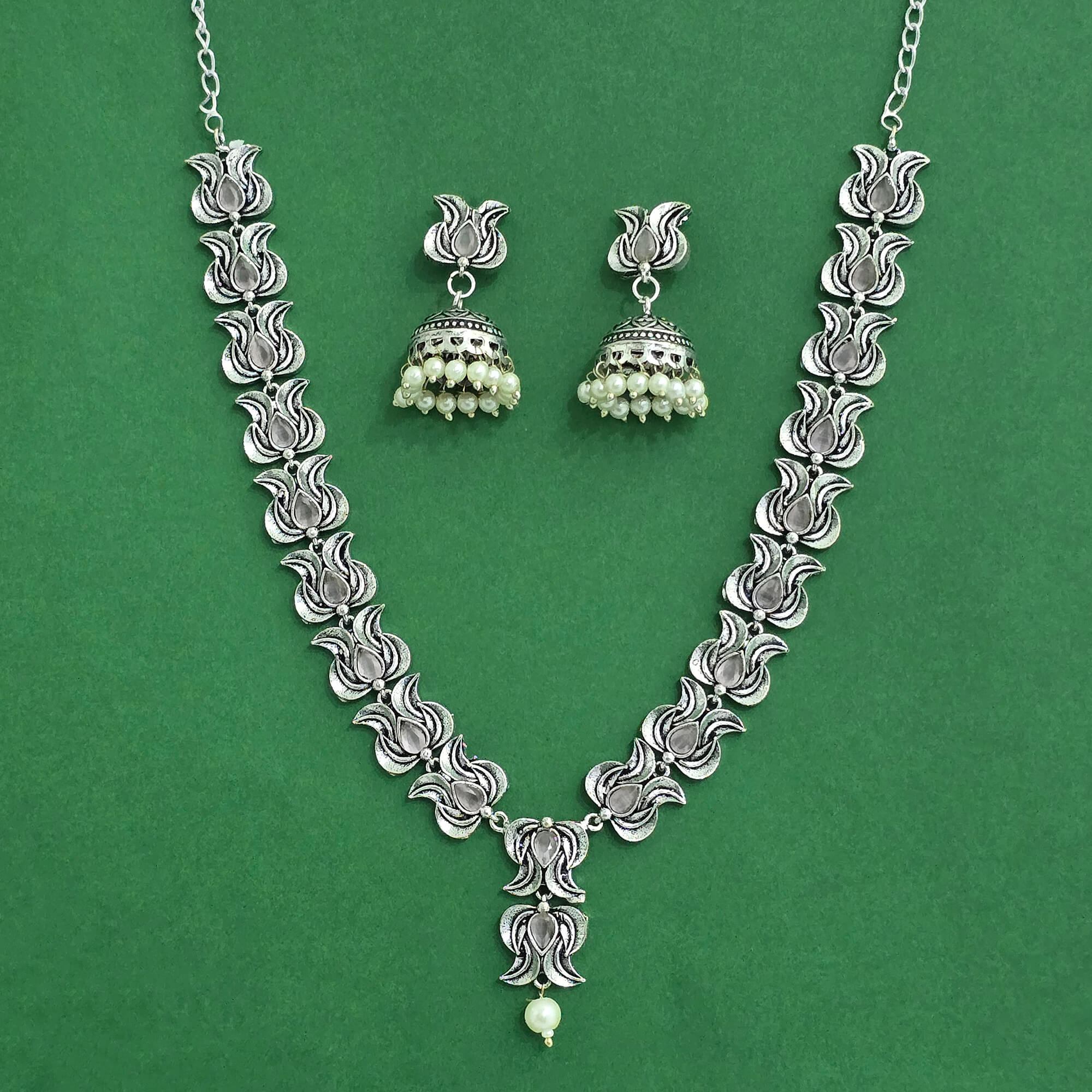 Kanhai Jewels offers an exclusive collection of finest quality crafted Fashion Jewellery in various colors. We make sure that our collection of Classic Necklace Set With Oxidised Plating are beautiful, elegent & will surely galvanize you, because our products are unique, comfortable, fashion forward & very popular for the rich look. Base Metal of our product is Alloy, i.e Mixing of Copper & Brass. We pack all the products using quality packaging material to ensure safe and secure transportation.