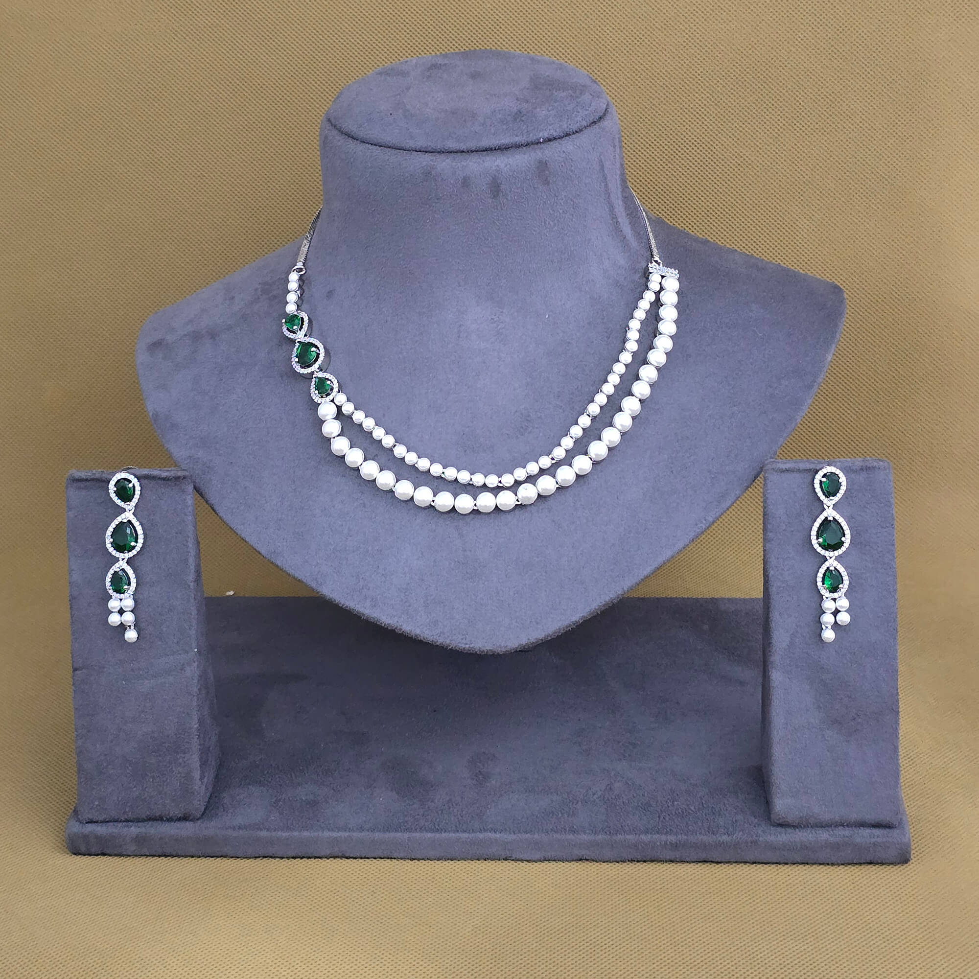 Kanhai Jewels offers an exclusive collection of finest quality crafted Fashion Jewellery in various colors. We make sure that our collection of Cubic Zirconia 2 Line Necklace With Rhodium Plating are beautiful, elegent & will surely galvanize you, because our products are unique, comfortable, fashion forward & very popular for the rich look. Base Metal of our product is Alloy, i.e Mixing of Copper & Brass. We pack all the products using quality packaging material to ensure safe and secure transportation.