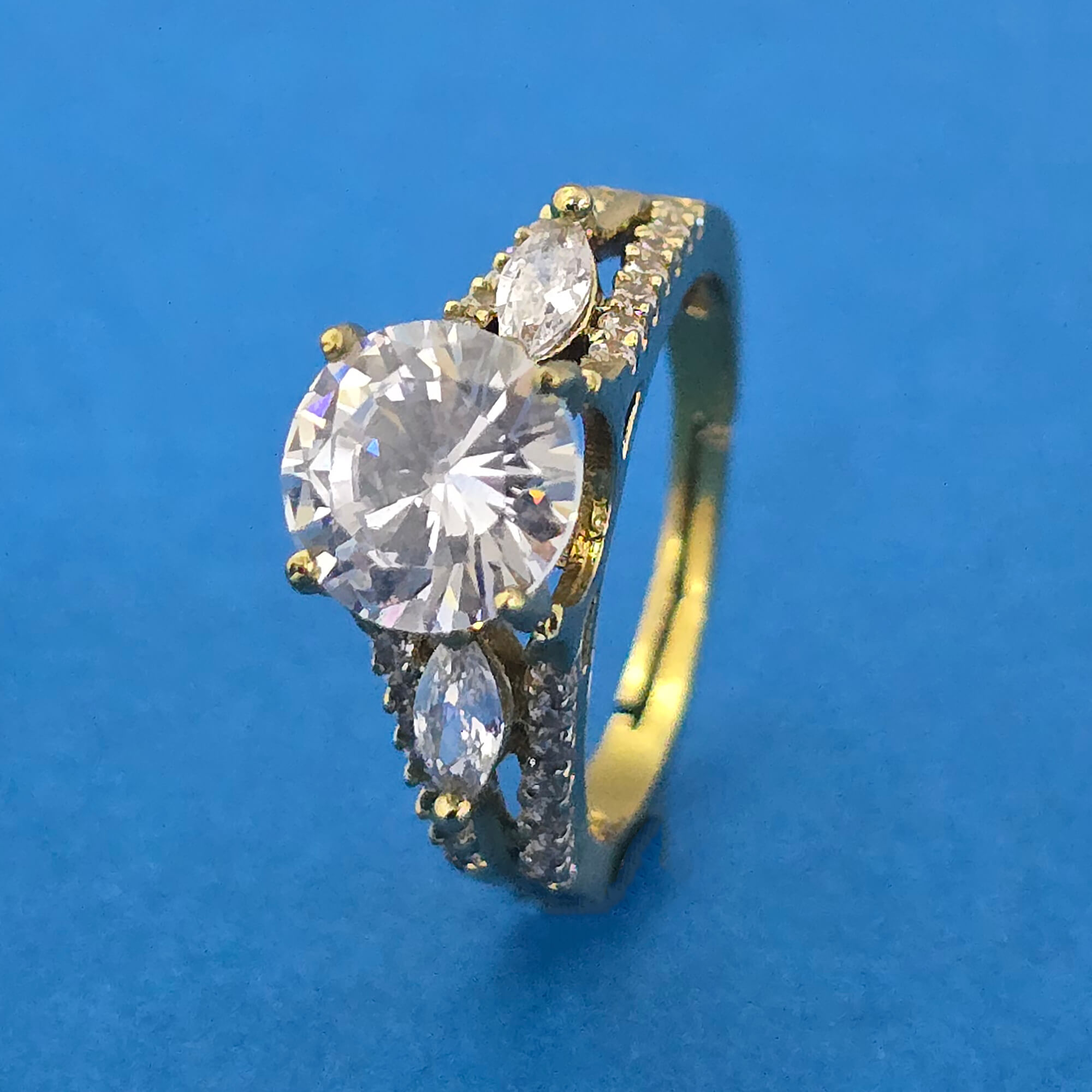Home / American Diamond Finger Ring / cubic zirconia adjustable ring with mehndi 2 tone rhodium plating