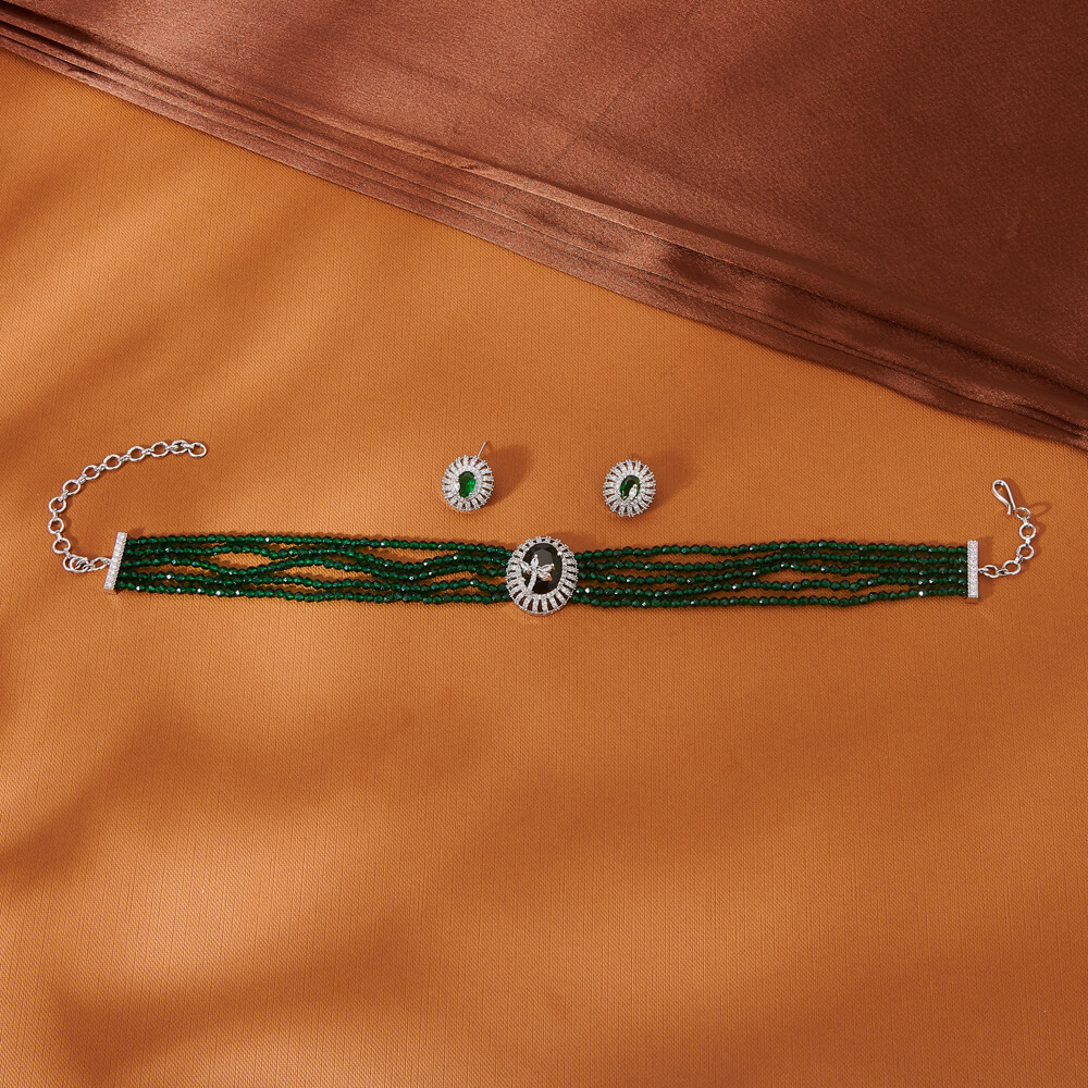 Kanhai Jewels offers an exclusive collection of finest quality crafted Fashion Jewellery in various colors. We make sure that our collection of Cubic Zirconia Choker Necklace With Rhodium Plating are beautiful, elegent & will surely galvanize you, because our products are unique, comfortable, fashion forward & very popular for the rich look. Base Metal of our product is Alloy, i.e Mixing of Copper & Brass. We pack all the products using quality packaging material to ensure safe and secure transportation.