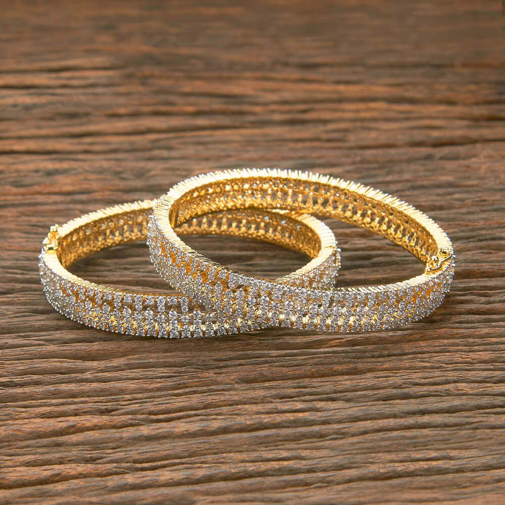 Kanhai Jewels offers an exclusive collection of finest quality crafted Fashion Jewellery in various colors. We make sure that our collection of Cubic Zirconia Classic Bangles With 2 Tone Plating are beautiful, elegent & will surely galvanize you, because our products are unique, comfortable, fashion forward & very popular for the rich look. Base Metal of our product is Alloy, i.e Mixing of Copper & Brass. We pack all the products using quality packaging material to ensure safe and secure transportation.