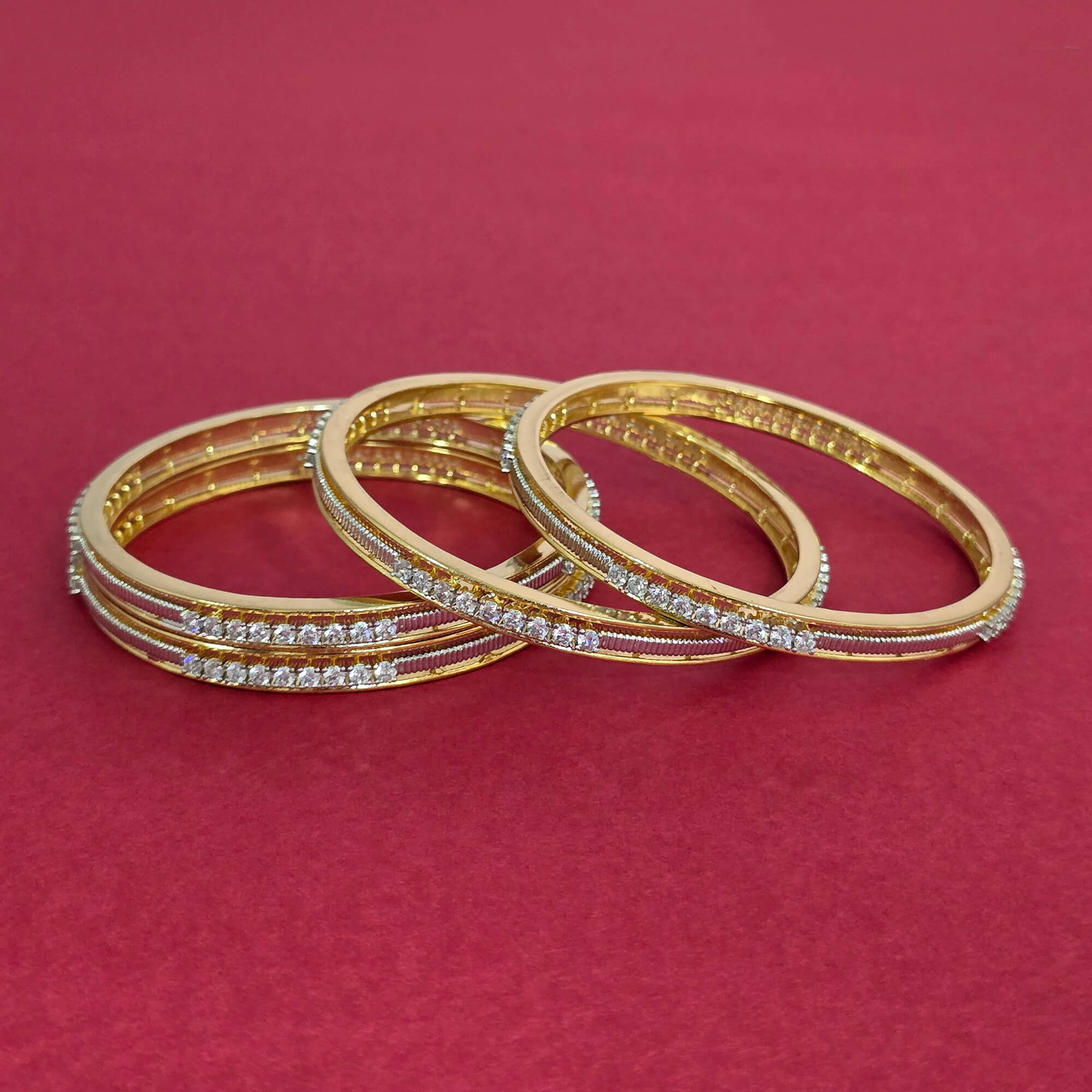 Kanhai Jewels offers an exclusive collection of finest quality crafted Fashion Jewellery in various colors. We make sure that our collection of Cubic Zirconia Classic Bangles With 2 Tone Plating are beautiful, elegent & will surely galvanize you, because our products are unique, comfortable, fashion forward & very popular for the rich look. Base Metal of our product is Alloy, i.e Mixing of Copper & Brass. We pack all the products using quality packaging material to ensure safe and secure transportation.