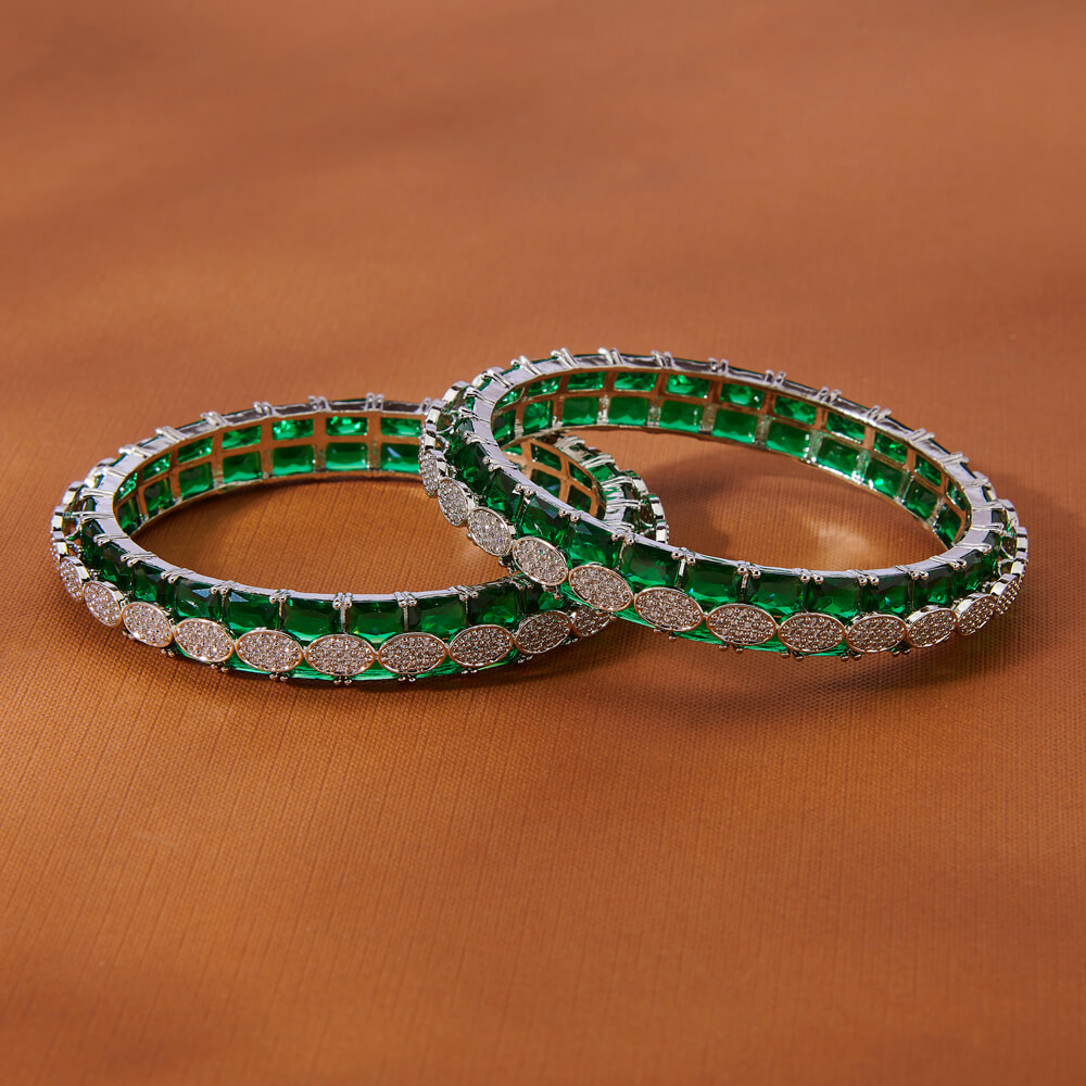 Kanhai Jewels offers an exclusive collection of finest quality crafted Fashion Jewellery in various colors. We make sure that our collection of Cubic Zirconia Classic Bangles With Rhodium Plating are beautiful, elegent & will surely galvanize you, because our products are unique, comfortable, fashion forward & very popular for the rich look. Base Metal of our product is Alloy, i.e Mixing of Copper & Brass. We pack all the products using quality packaging material to ensure safe and secure transportation.