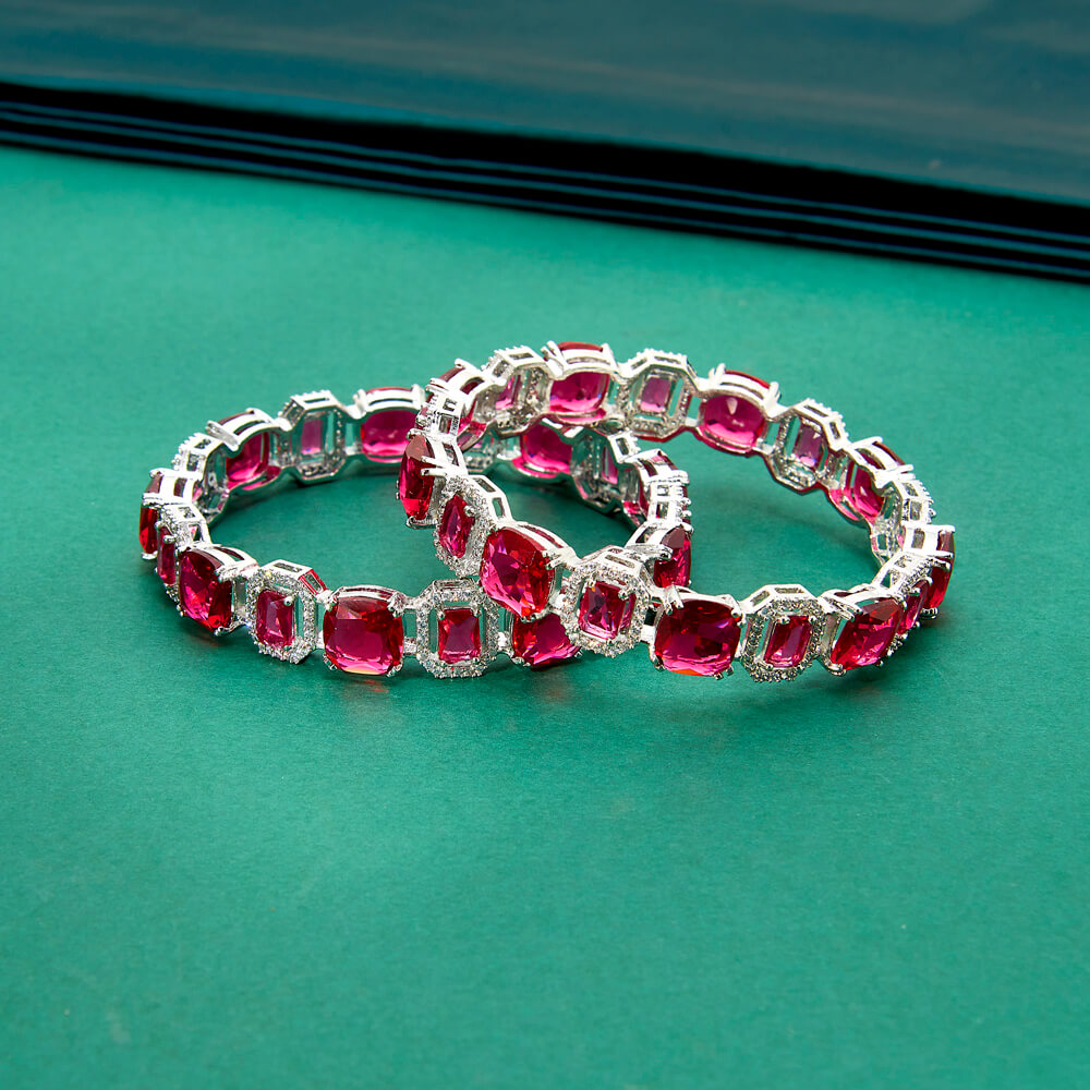 Kanhai Jewels offers an exclusive collection of finest quality crafted Fashion Jewellery in various colors. We make sure that our collection of Cubic Zirconia Classic Bangles With Rhodium Plating are beautiful, elegent & will surely galvanize you, because our products are unique, comfortable, fashion forward & very popular for the rich look. Base Metal of our product is Alloy, i.e Mixing of Copper & Brass. We pack all the products using quality packaging material to ensure safe and secure transportation.