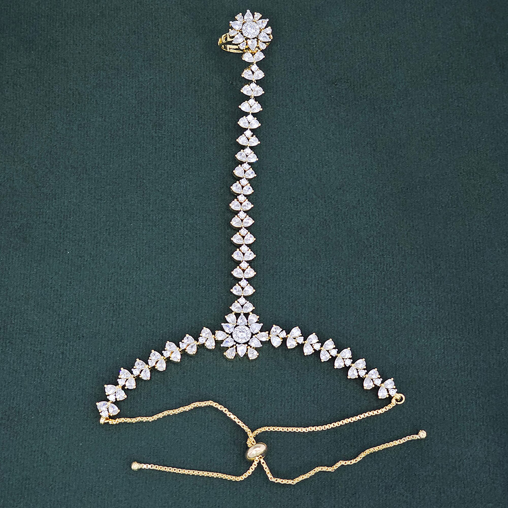 Kanhai Jewels offers an exclusive collection of finest quality crafted Fashion Jewellery in various colors. We make sure that our collection of Cubic Zirconia Classic Hath Pan With 2 Tone Rhodium Plating are beautiful, elegent & will surely galvanize you, because our products are unique, comfortable, fashion forward & very popular for the rich look. Base Metal of our product is Alloy, i.e Mixing of Copper & Brass. We pack all the products using quality packaging material to ensure safe and secure transportation.