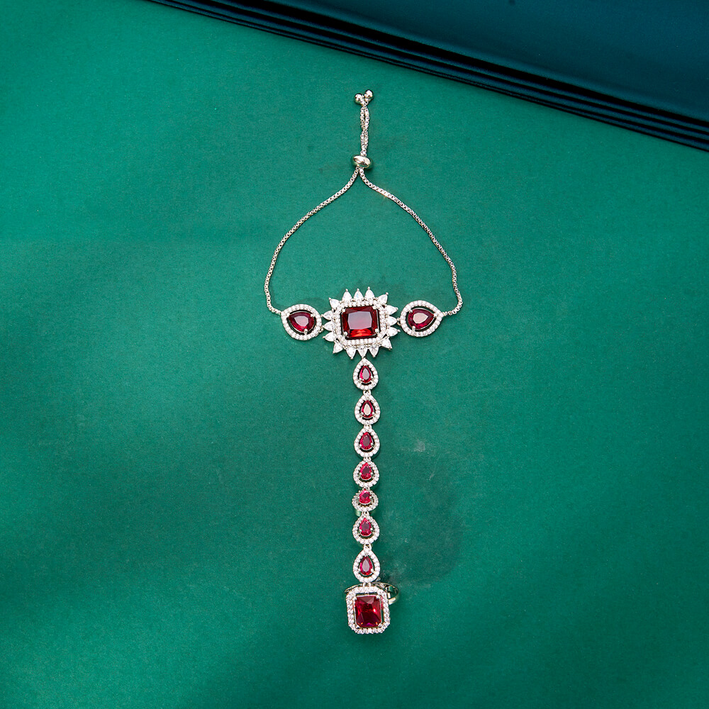 Kanhai Jewels offers an exclusive collection of finest quality crafted Fashion Jewellery in various colors. We make sure that our collection of Cubic Zirconia Classic Hath Pan With Rhodium Plating are beautiful, elegent & will surely galvanize you, because our products are unique, comfortable, fashion forward & very popular for the rich look. Base Metal of our product is Alloy, i.e Mixing of Copper & Brass. We pack all the products using quality packaging material to ensure safe and secure transportation.