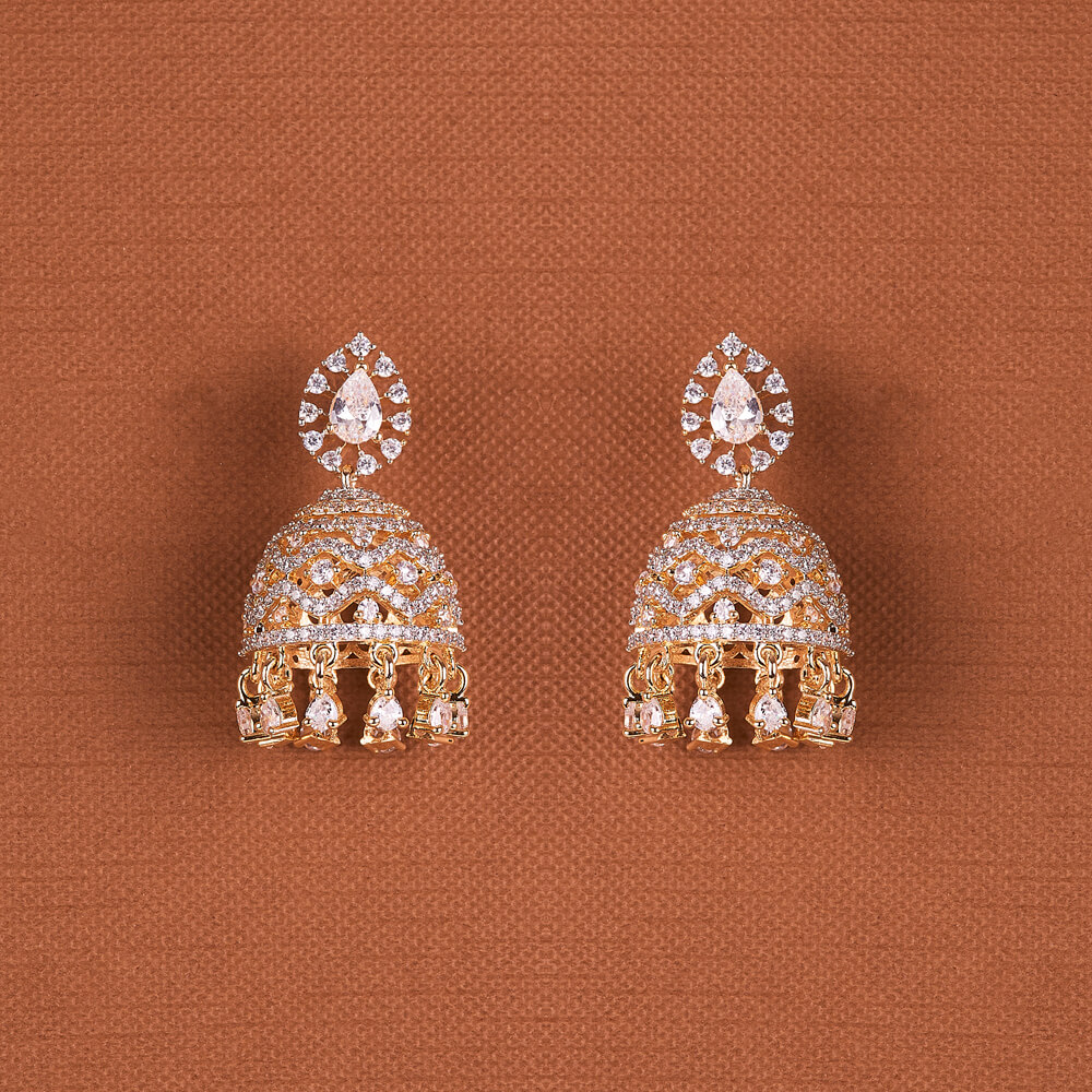Kanhai Jewels offers an exclusive collection of finest quality crafted Fashion Jewellery in various colors. We make sure that our collection of Cubic Zirconia Classic Jhumki With 2 Tone Rhodium Plating are beautiful, elegent & will surely galvanize you, because our products are unique, comfortable, fashion forward & very popular for the rich look. Base Metal of our product is Alloy, i.e Mixing of Copper & Brass. We pack all the products using quality packaging material to ensure safe and secure transportation.