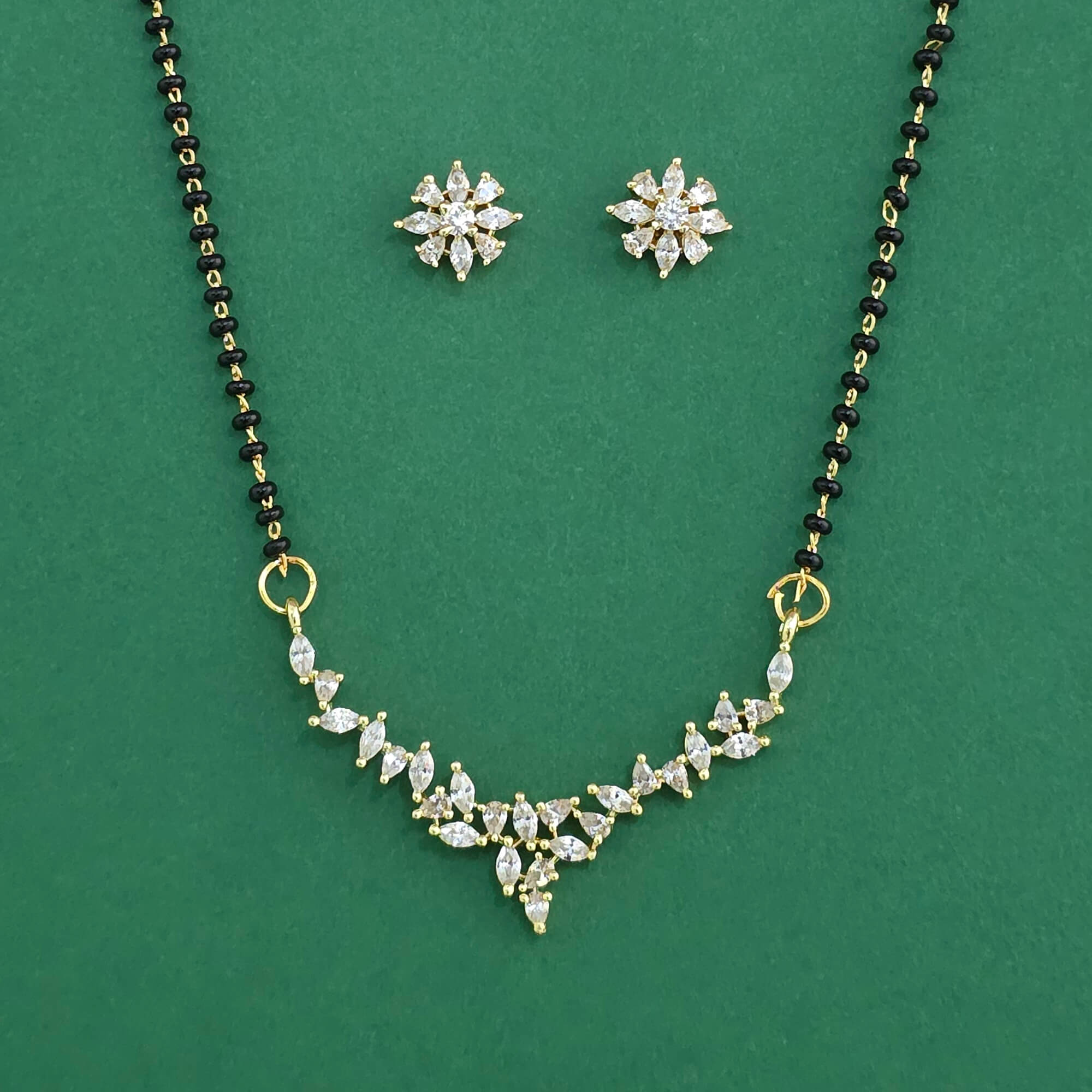Kanhai Jewels offers an exclusive collection of finest quality crafted Fashion Jewellery in various colors. We make sure that our collection of Cubic Zirconia Classic Mangalsutra With Gold Plating are beautiful, elegent & will surely galvanize you, because our products are unique, comfortable, fashion forward & very popular for the rich look. Base Metal of our product is Alloy, i.e Mixing of Copper & Brass. We pack all the products using quality packaging material to ensure safe and secure transportation.