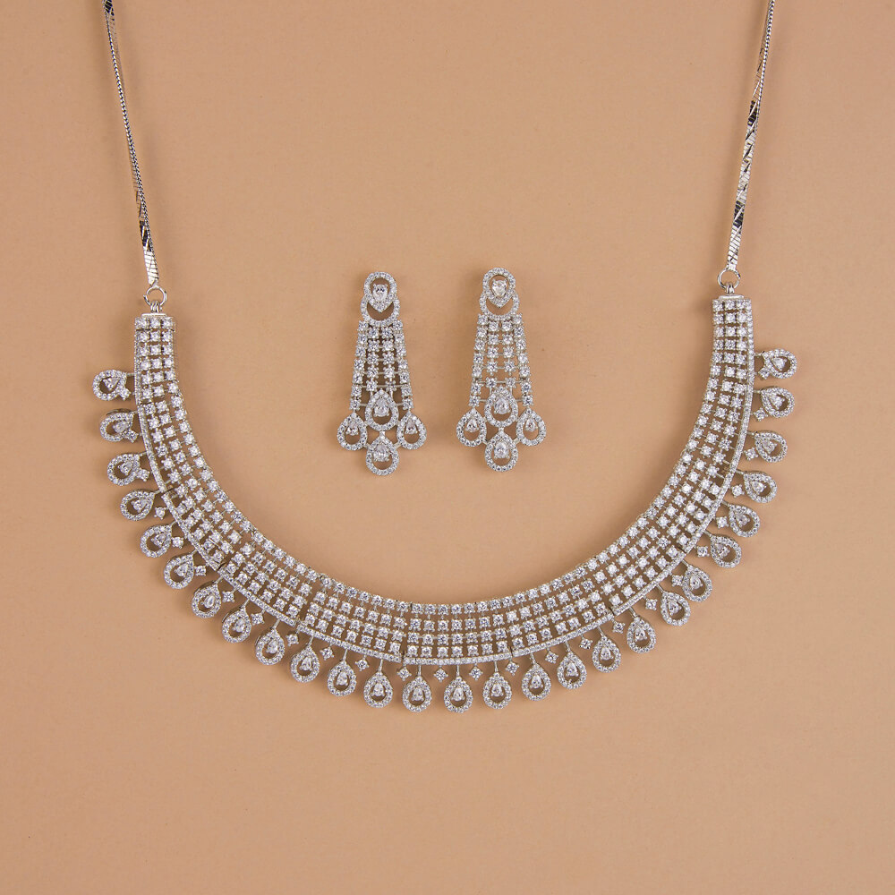 Kanhai Jewels Offers An Exclusive Collection Of Finest Quality Crafted Fashion Jewellery In Various Colors. We Make Sure That Our Collection Of Cubic Zirconia Classic Necklace Set With 2 Tone Rhodium Plating Are Beautiful, Elegent & Will Surely Galvanize You, Because Our Products Are Unique, Comfortable, Fashion Forward & Very Popular For The Rich Look. Base Metal Of Our Product Is Alloy, I.E Mixing Of Copper & Brass. We Pack All The Products Using Quality Packaging Material To Ensure Safe And Secure Transportation.