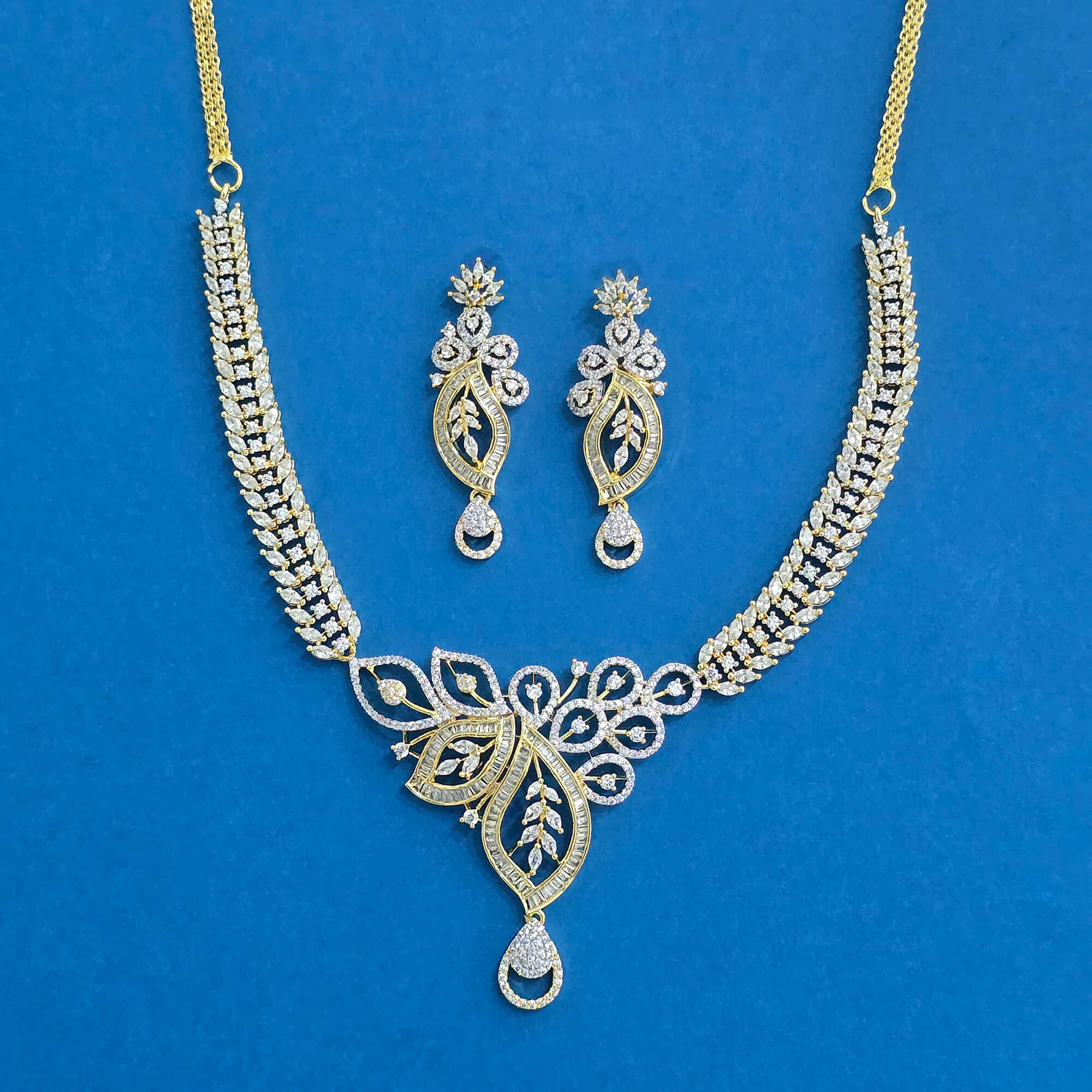 Home / American Diamond Necklace / cubic zirconia classic necklace set with rhodium 2 tone plating