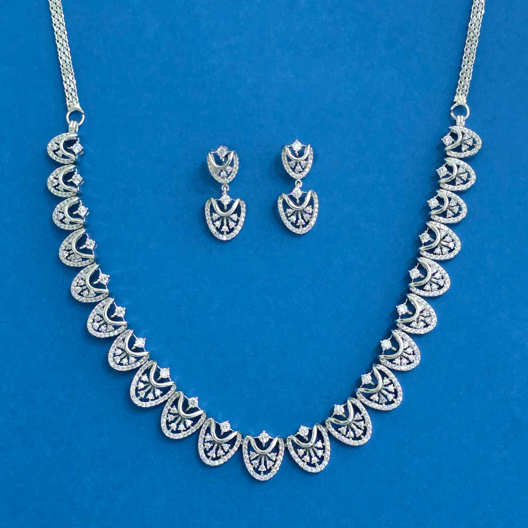 Home / American Diamond Necklace / cubic zirconia classic necklace set with rhodium 2 tone plating