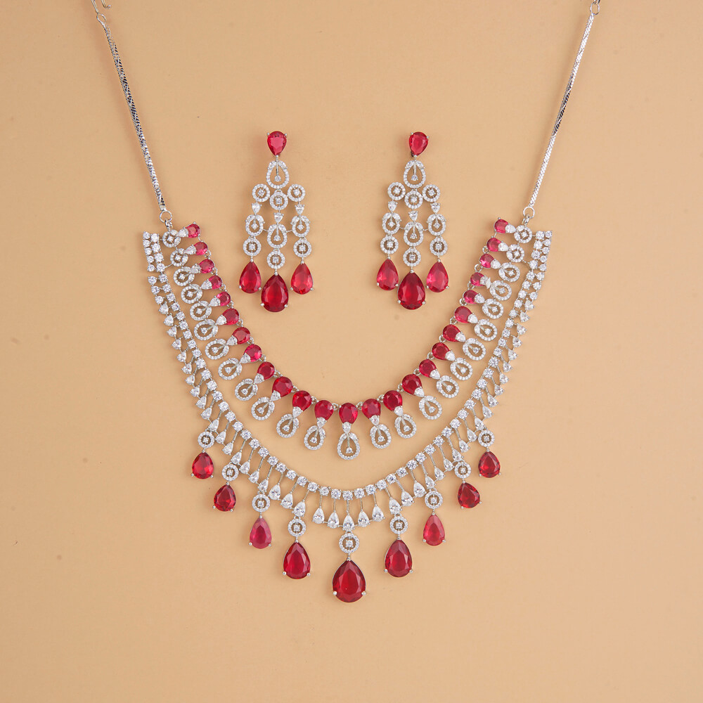 Home / American Diamond Necklace / cubic zirconia classic necklace set with rhodium plating
